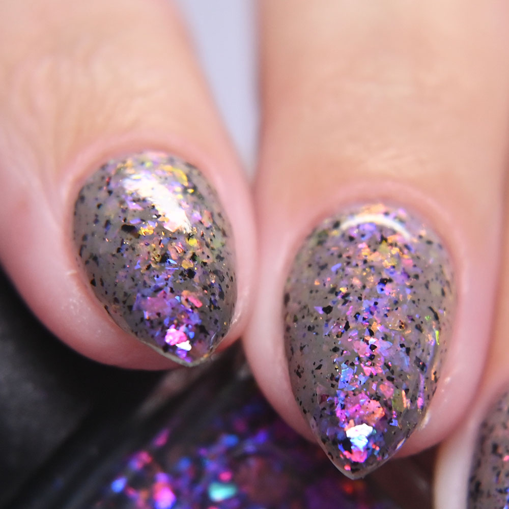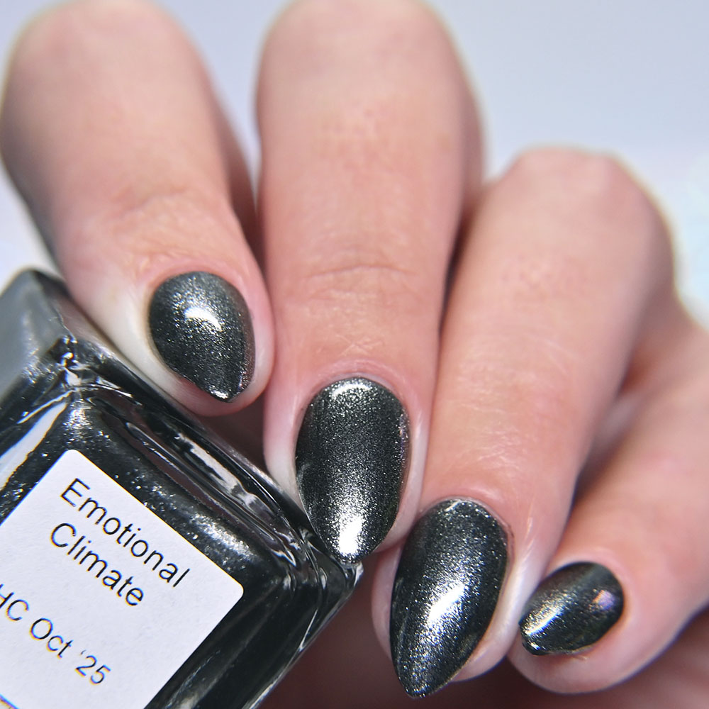 Description: Emotional Climate is a smokey grey crelly base loaded with silver shimmer.