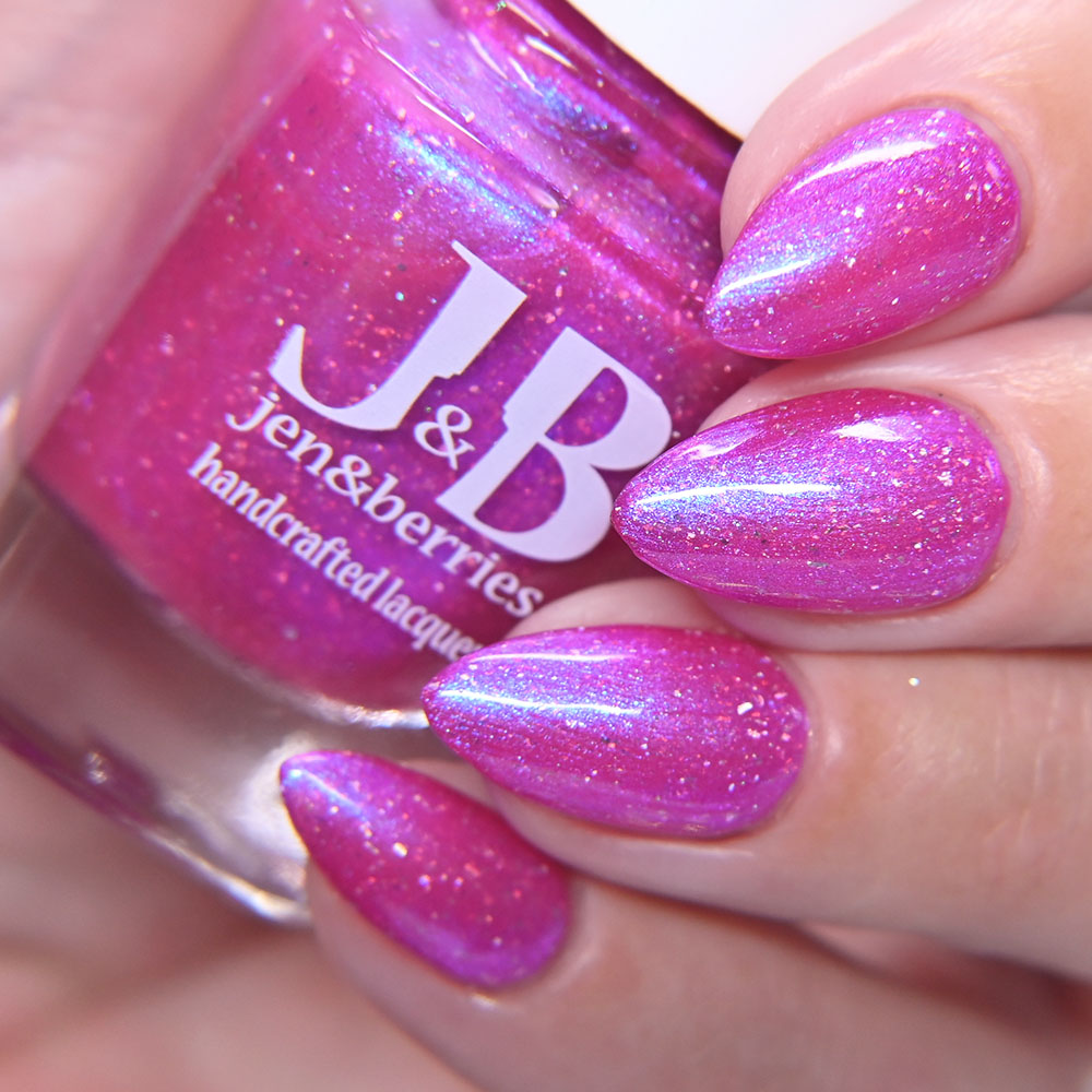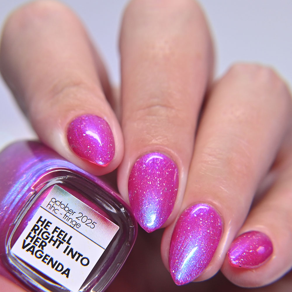 Description: He Fell Right into Her Vagenda is a hot pink jelly base with glowy blue to purple shifting shimmer and holographic flakes.