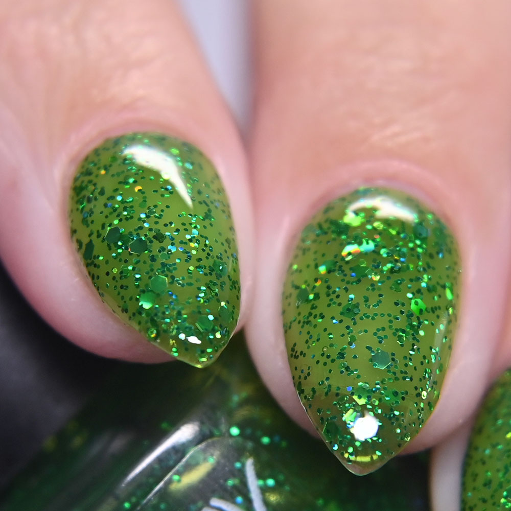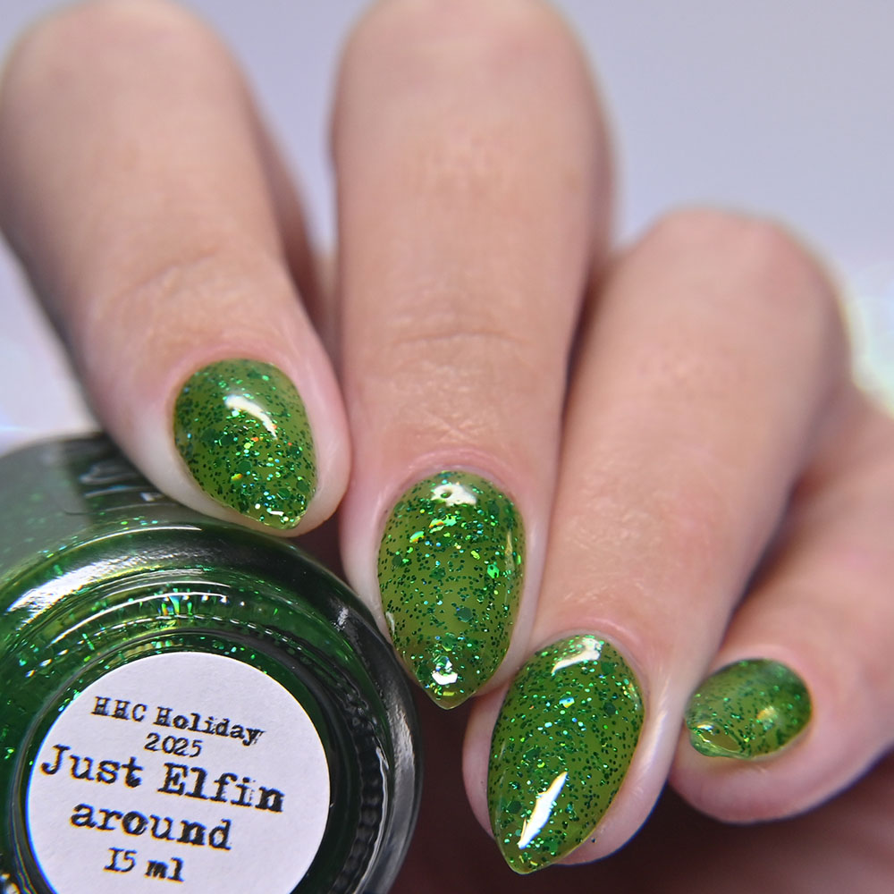 Description: Just Elfin Around is a green jelly base with sparkling green glitters.