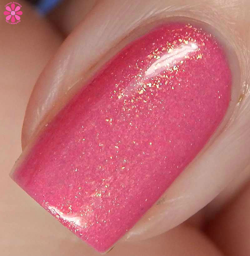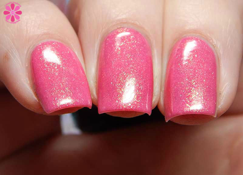 I Don’t Want No Shrubs was created with Jen from My Nail Polish Obsession. This is a bright fuchsia crelly base with gold microflakes and shimmer mixed in. I used 2 coats and a glossy top coat for these photos.