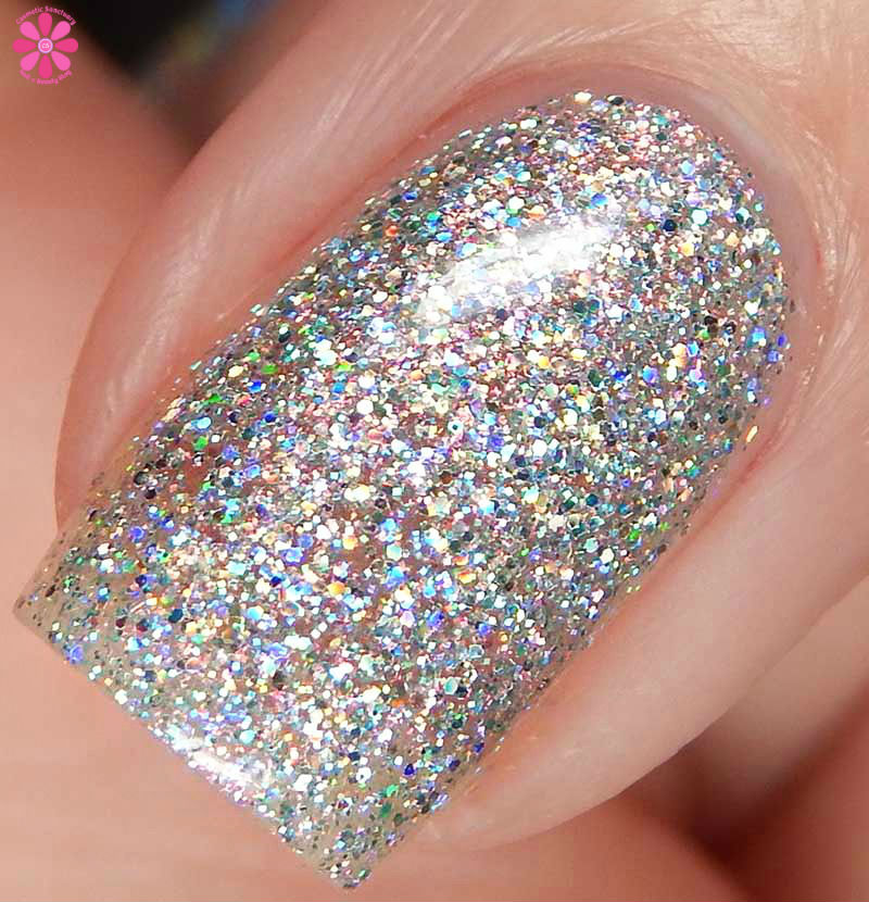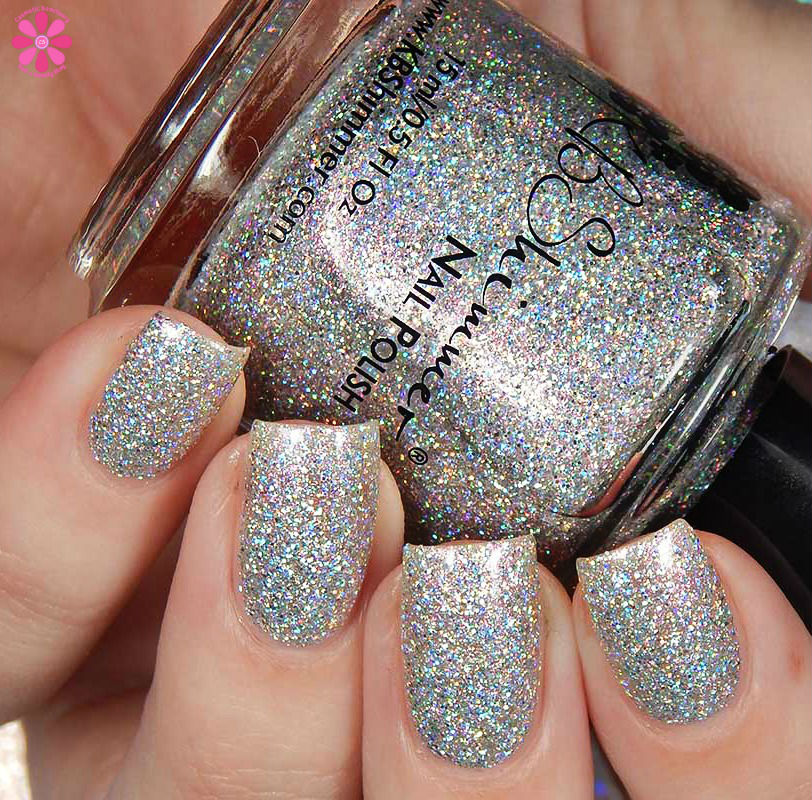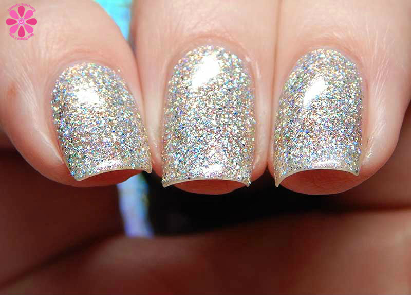 Pearls Gone Wild was created with Amy from McPolish. This beauty is a mix of micro and small silver holographic glitters with a red to copper to gold to pink shifting shimmer that’s a little subtle among the holo sparkle. I used 2 coats and a glossy top coat for these photos.