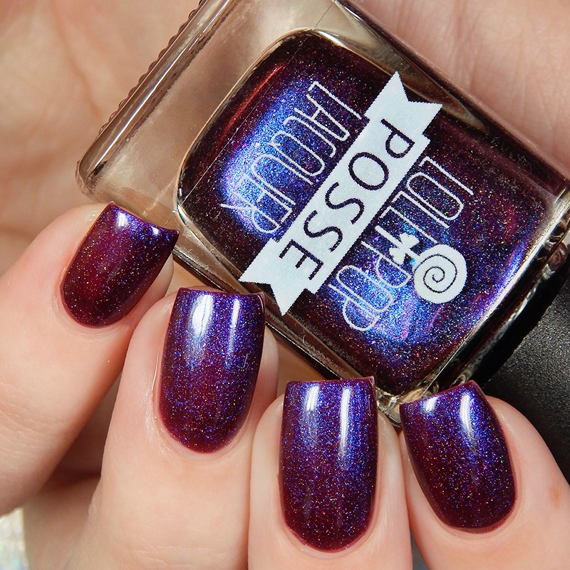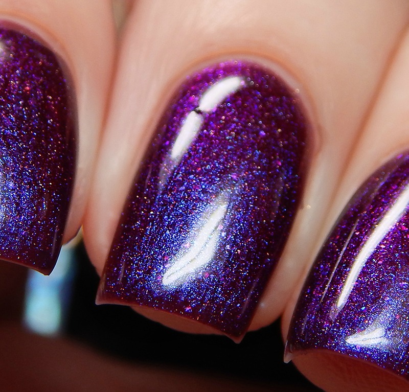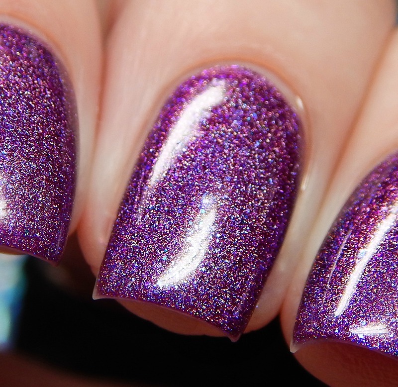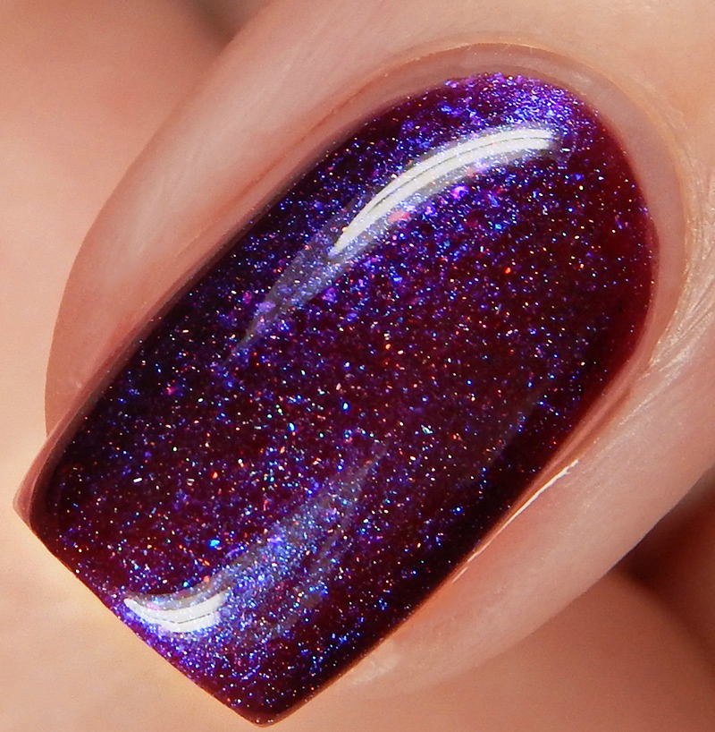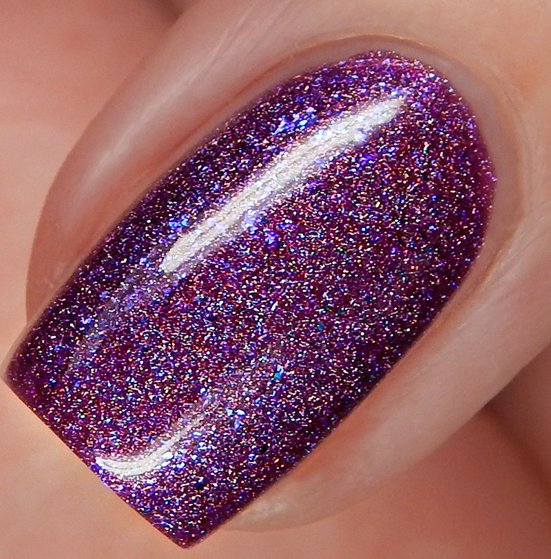What A Million Filament is a bright red toned purple linear holographic with green to blue to purple shifting microglitters and blue iridescent flakes. I used 2 coats and a glossy top coat for these photos.