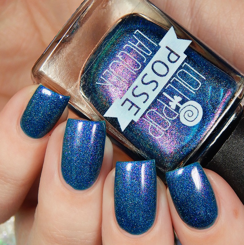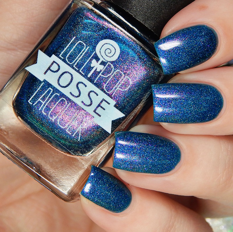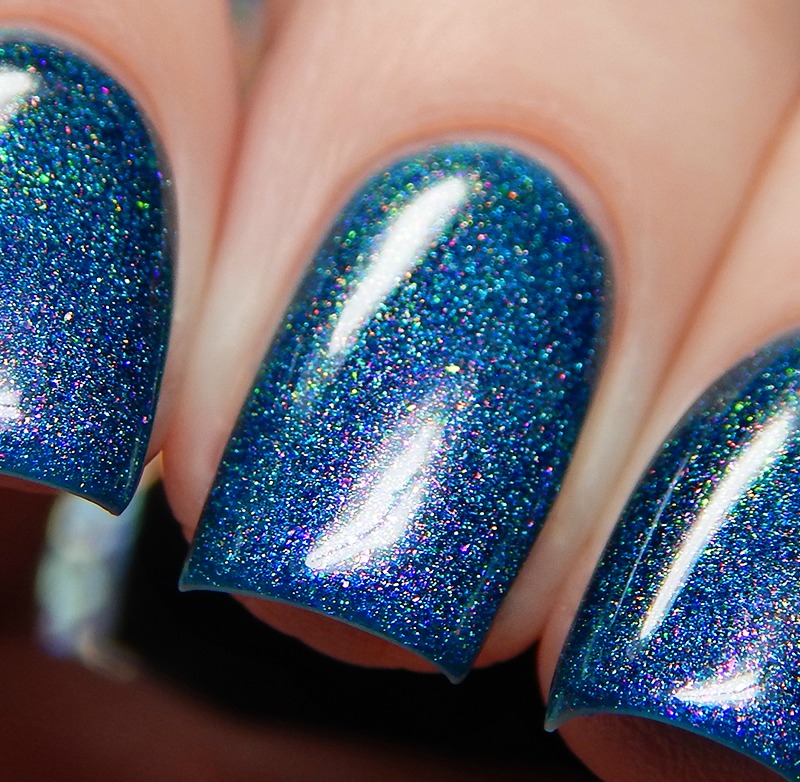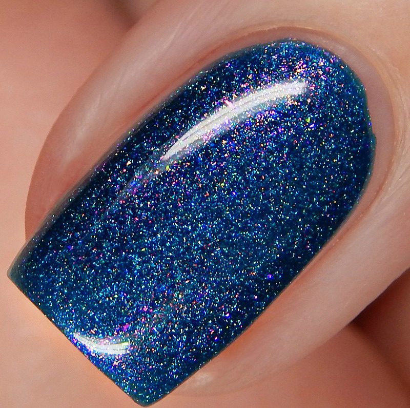 The High Priestess is a vibrant cobalt crelly based scattered holographic packed with bright red to pink to gold Aurora shimmer. I used 2 coats and a glossy top coat for these photos.