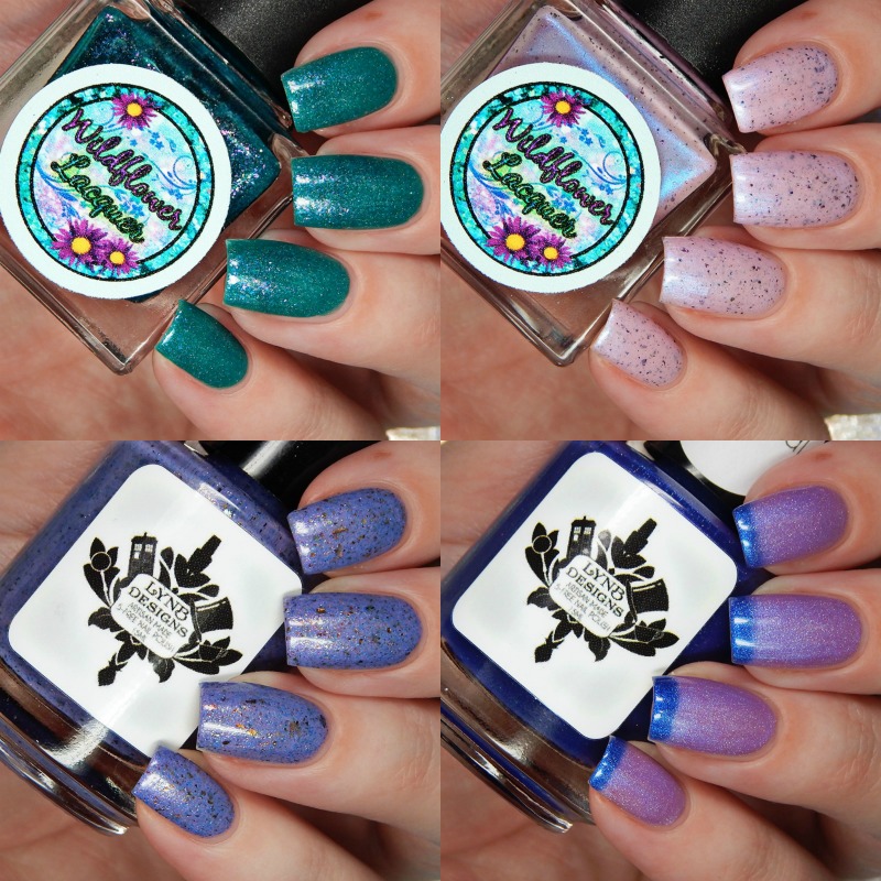 And there we have it! This isn’t my first time with LynB Designs (whom I adore) but it’s probably my second or third time trying Wildflower Lacquer and I’m loving her creations as well! All 4 applied beautifully – and i can say without a doubt the thermal transitioned easily.