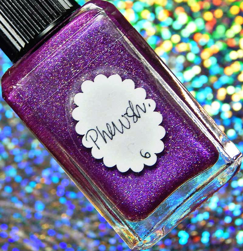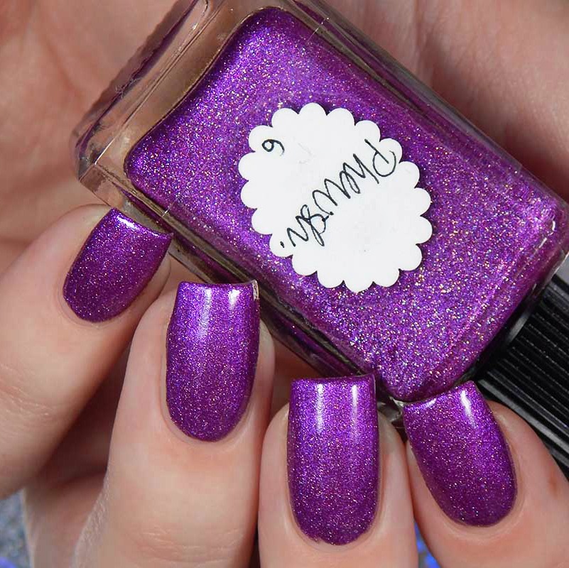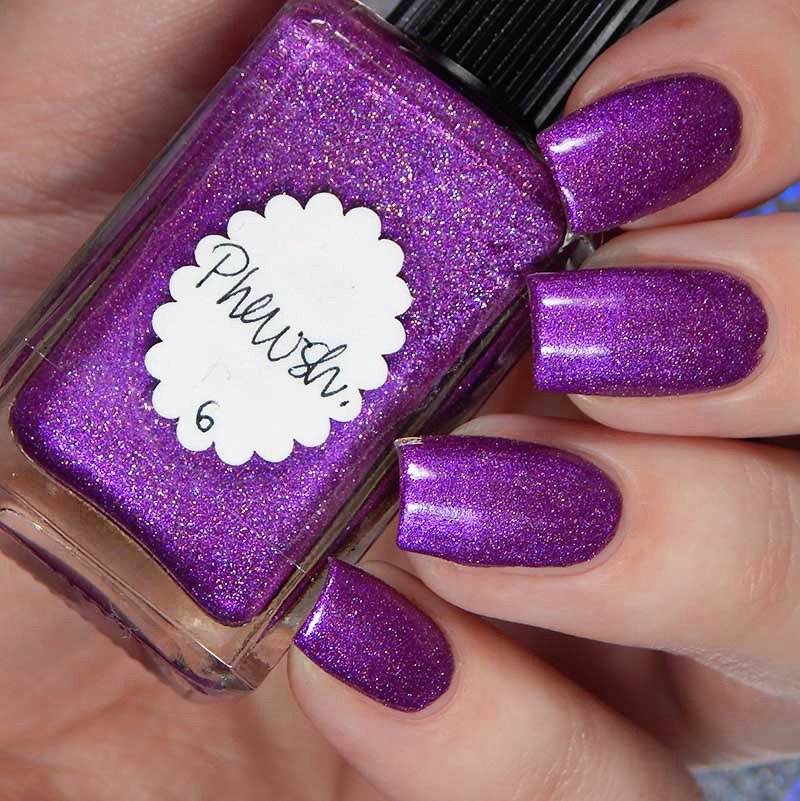 Phewsh is a violet leaning fuchsia shimmerella with pink holographic nanoglitters and a scattered holographic effect. I used 2 coats and a glossy top coat for these photos.