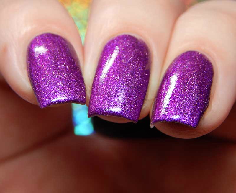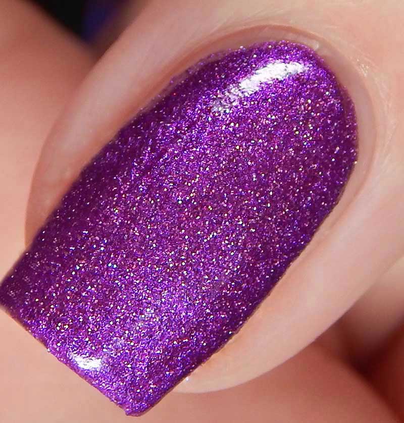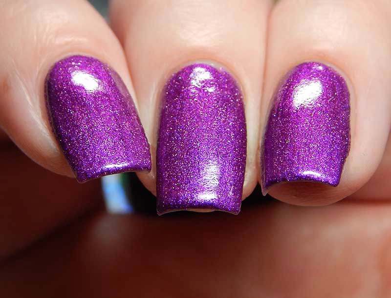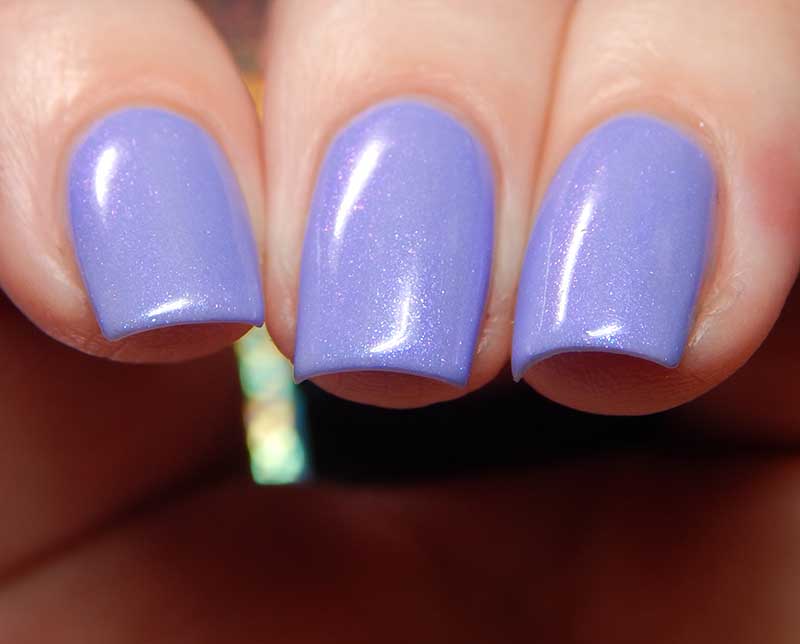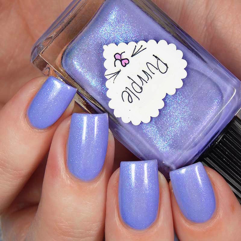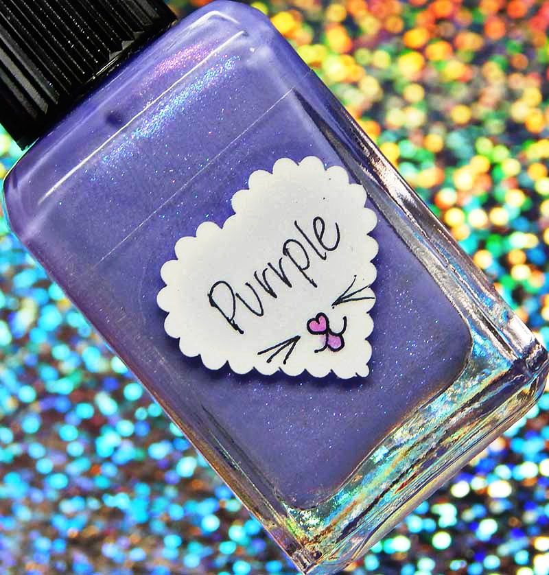 Purrple is just adorable! From the label to the color. Purrple is a medium lavender with pink to blue shifting shimmer. I used 2 coats and a glossy top coat for these photos.