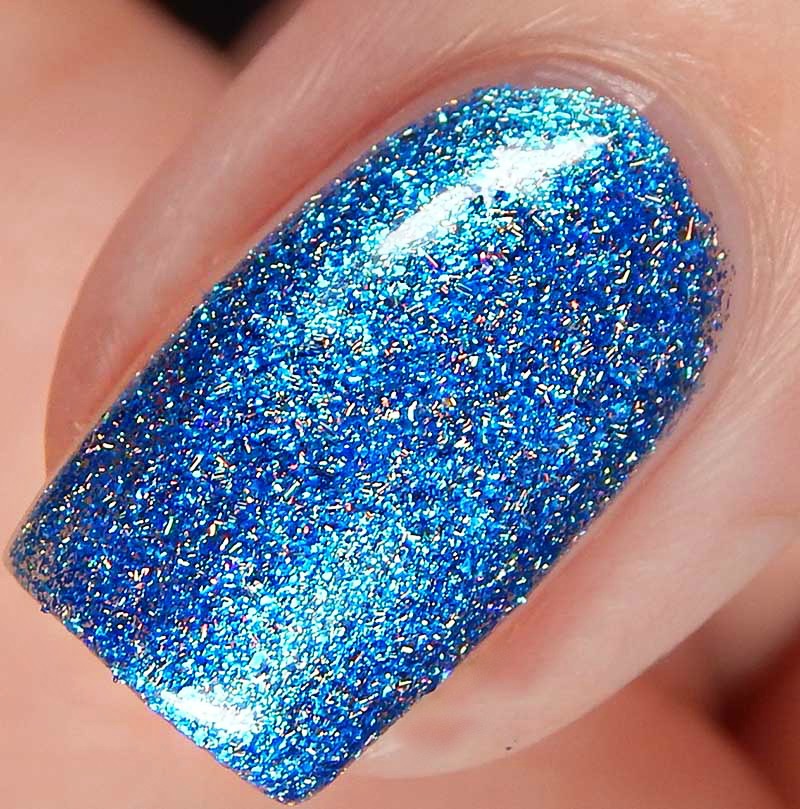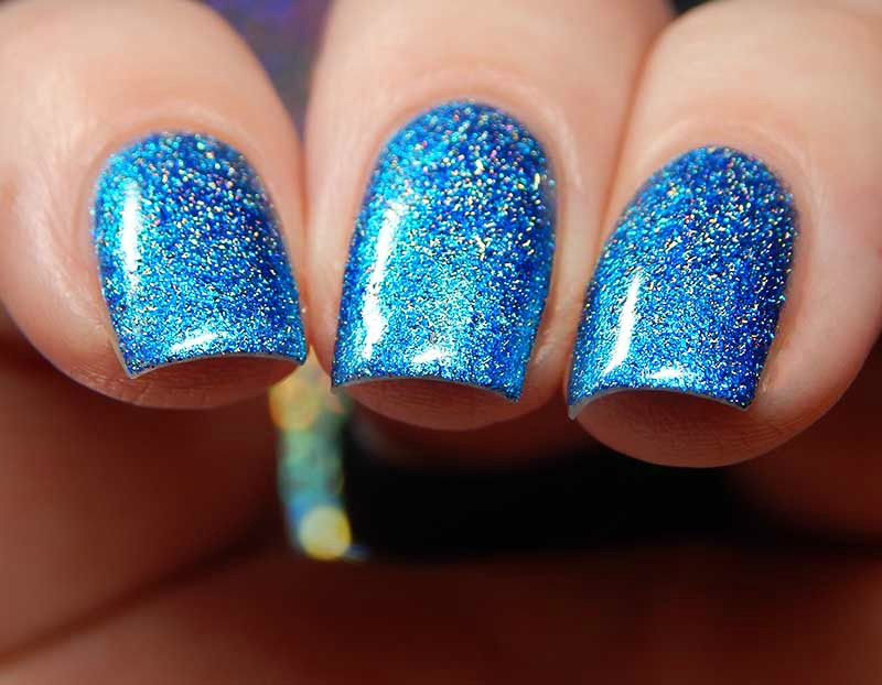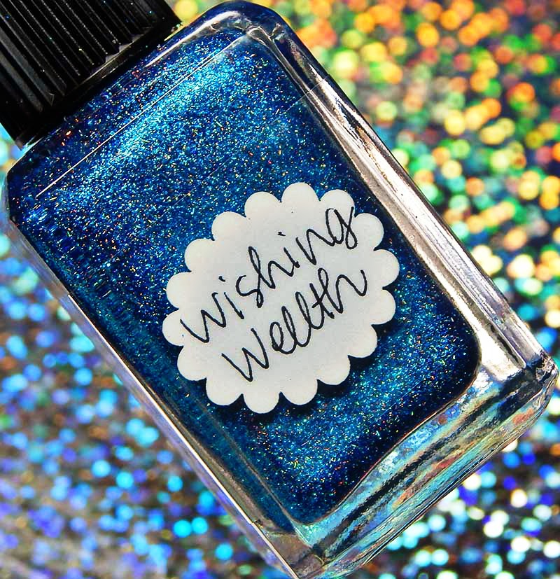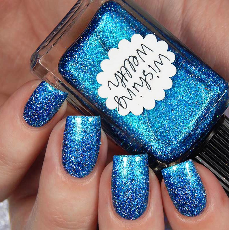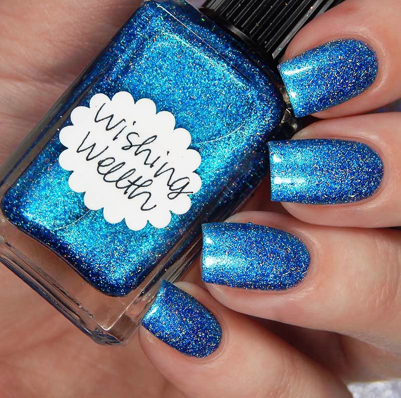 Wishing Wellth is a beautiful vibrant blue with a flash of cyan, as well as metallic flecks and silver holographic nano flakes. I used 2 coats and a glossy top coat for these photos.