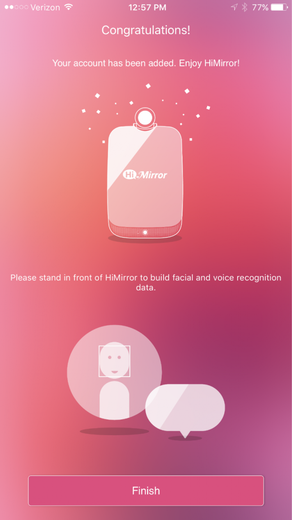 To get started with your HiMirror, you download their app and set up an account. This way you can take the data it collects with you on the go. Once you have your account created, you are ready to set up the HiMirror’s facial and voice recognition. That’s right, it’s that personalized.