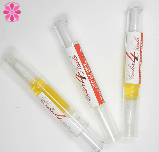 Like the cuticle oil, it comes in a 4.5 oz click pen style applicator with a brush tip. Easy to use and easy to travel with, you will need an orange stick or other cuticle pusher for it though as well.