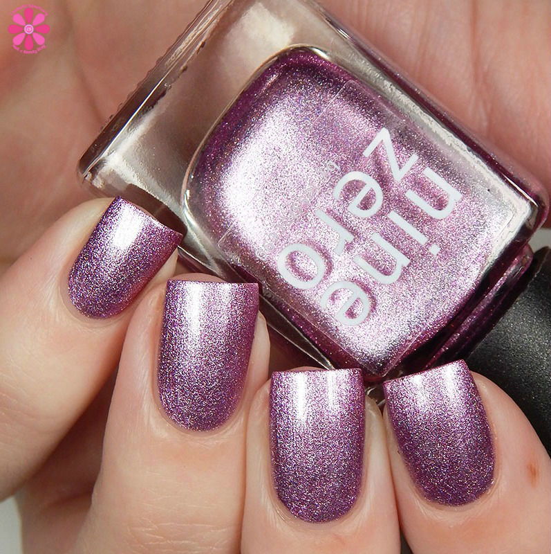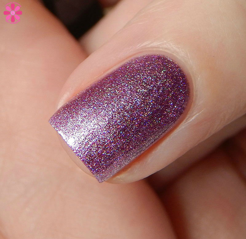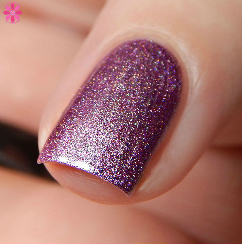 Nine Zero Lacquer VIP? Not Me! is a medium pink metallic linear holographic. This leans almost into the orchid territory with some hints of purple coming through.