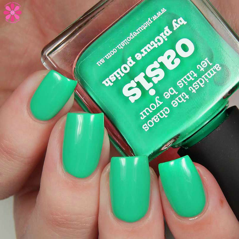 This time around we’re seeing a TON of blue! Oasis is the only non blue shade, but the cool green is incredible as well. 2 of the 6 shades are collab polishes this time around, while 4 are straight from Picture Polish.