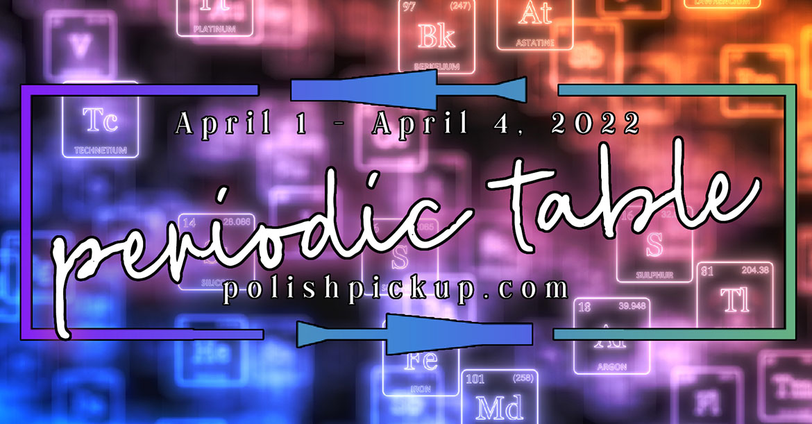 Happy Saturday… almost Sunday. It’s late and I’m hoping I finish this post up before I head to bed. I have my big post for Polish Pickup ready, and for April 2022 the theme is Periodic Table!