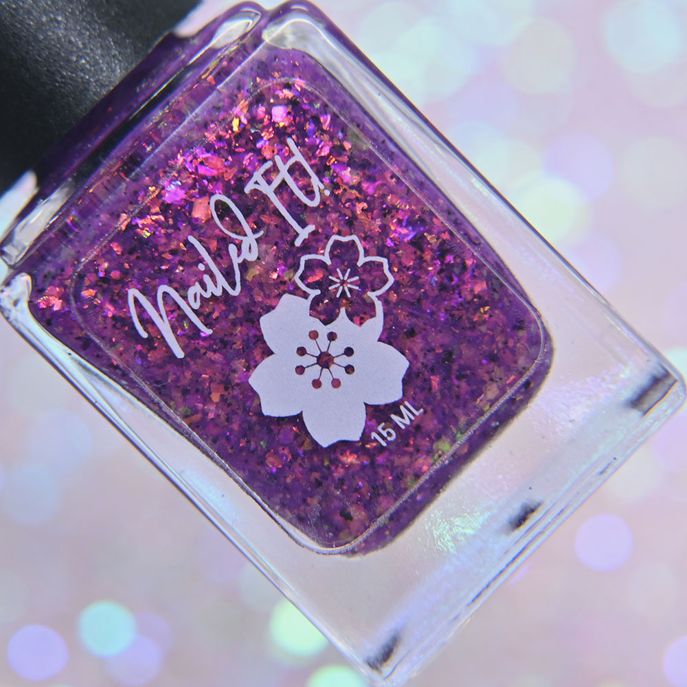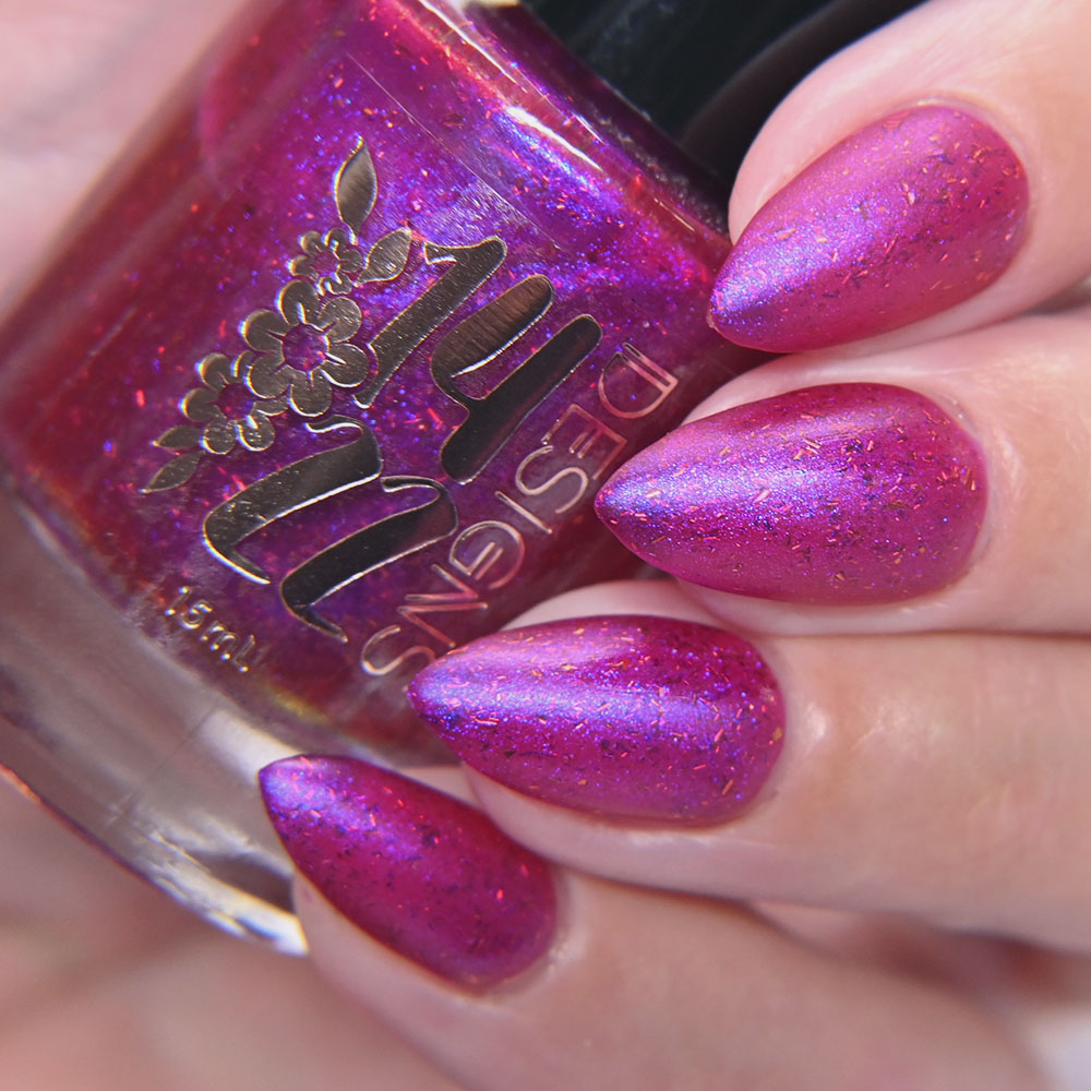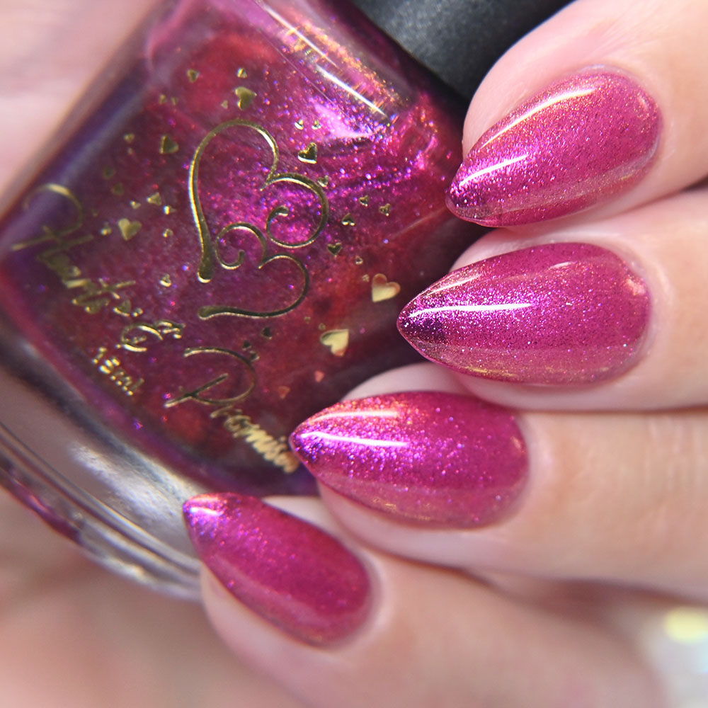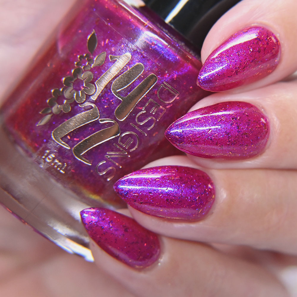 Description: Take Her to the Moon is a vibrant magenta jelly base loaded with pink reflective glitter and iridescent blue/violet and pink/orange/yellow flakes.