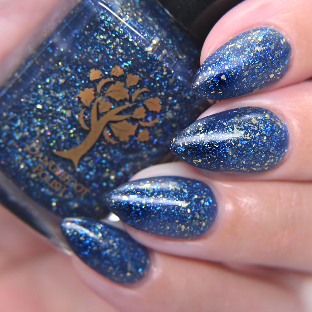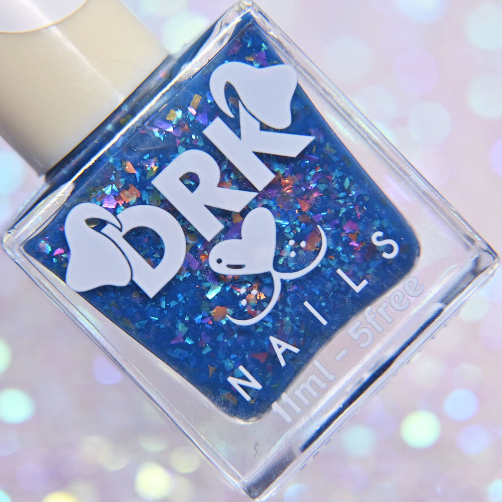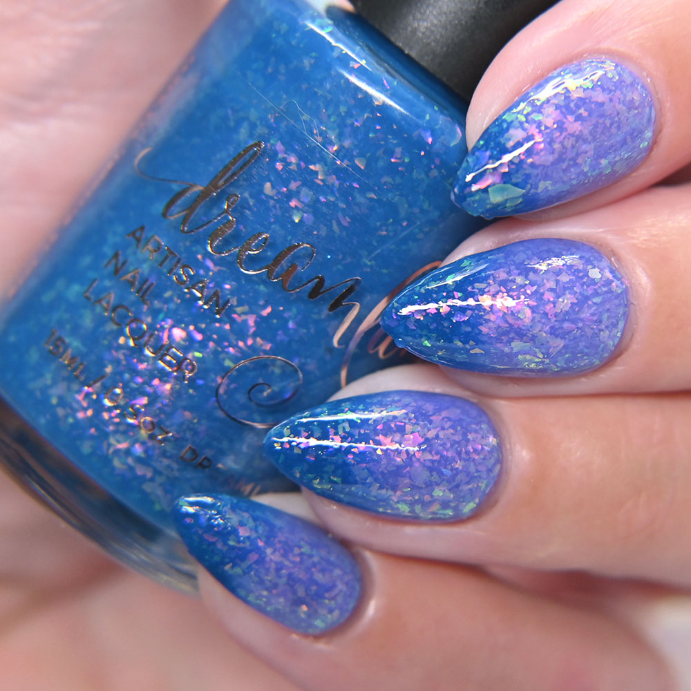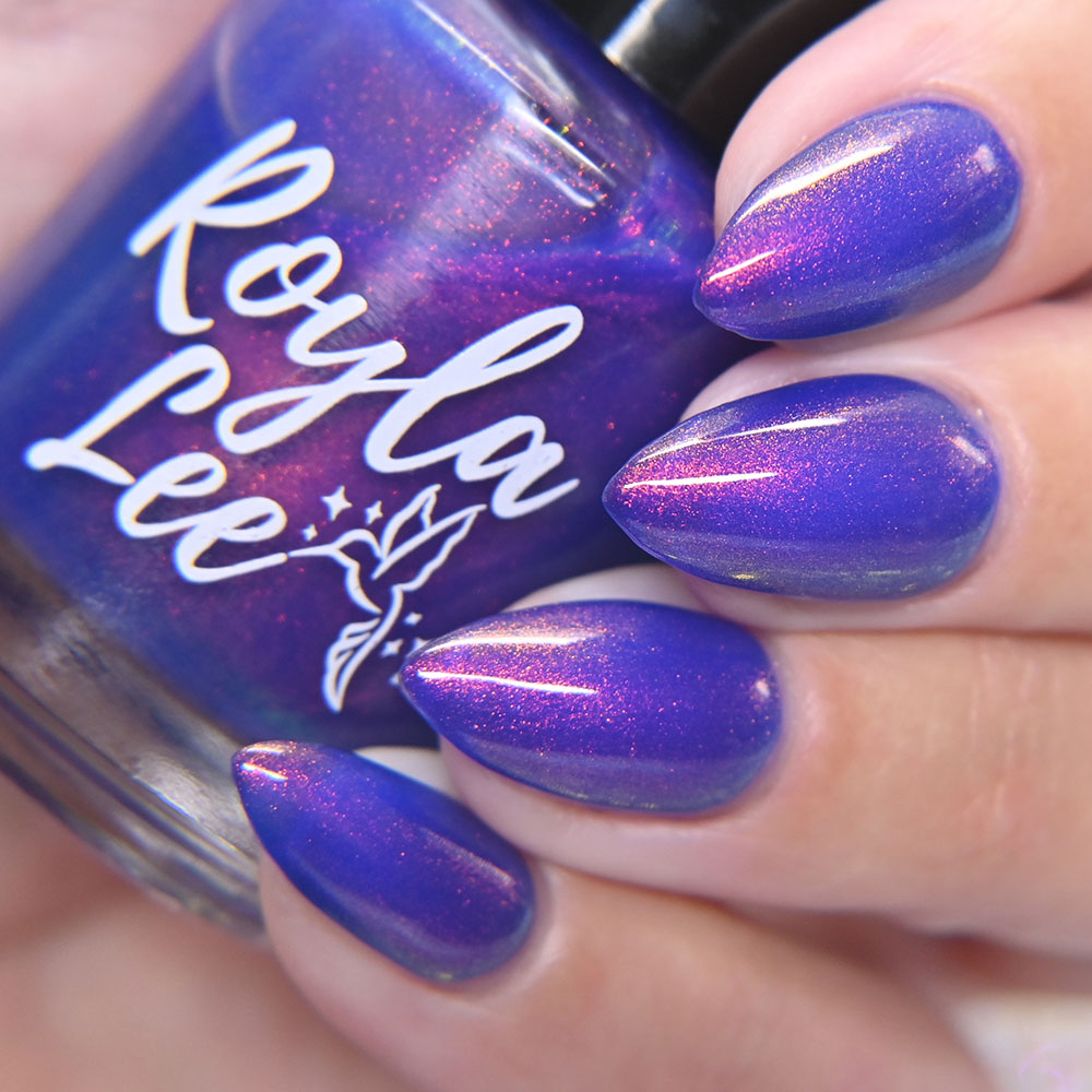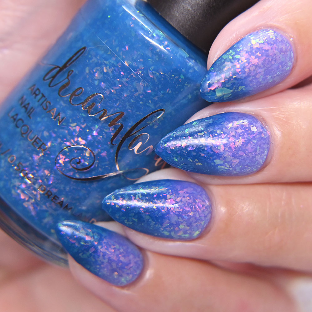 Description: Too Sad To Run is a vivid blue with blue/purple shimmer, purple chrome flakies, and silver holographic flakies.