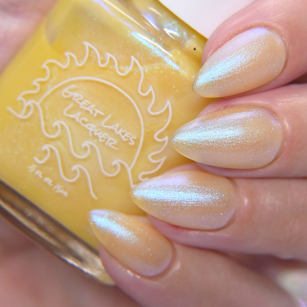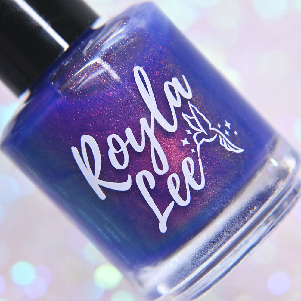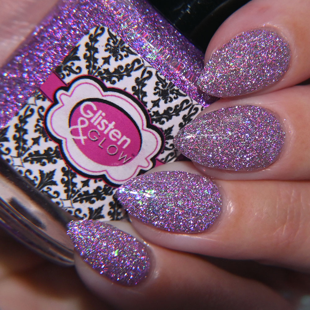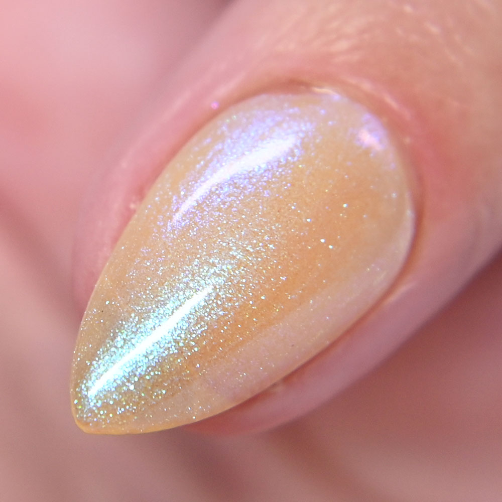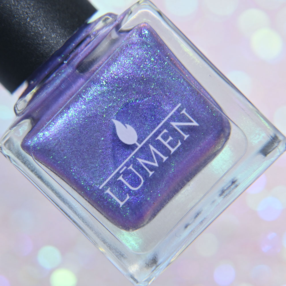 Description: Adrift is a gentle lavender with a purple to pink pearl shift and a large particle shimmer that shifts blue, to indigo, and green.