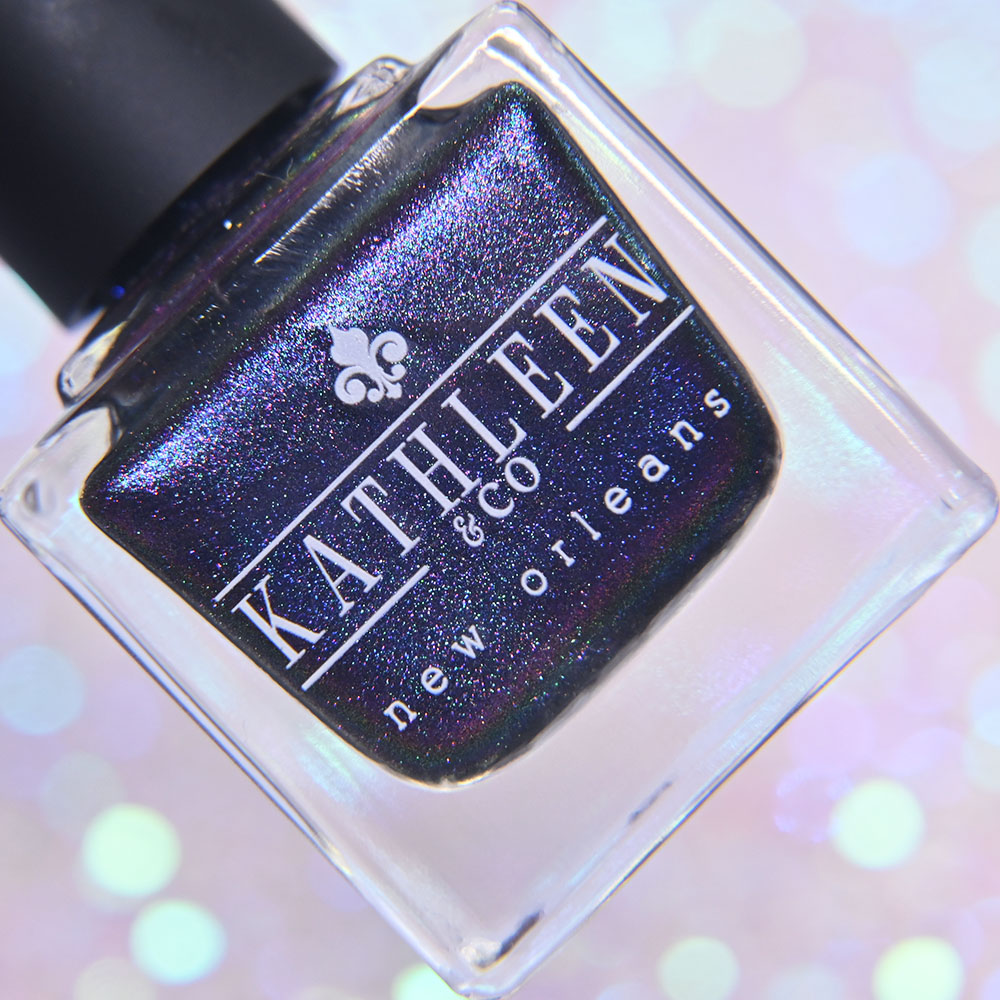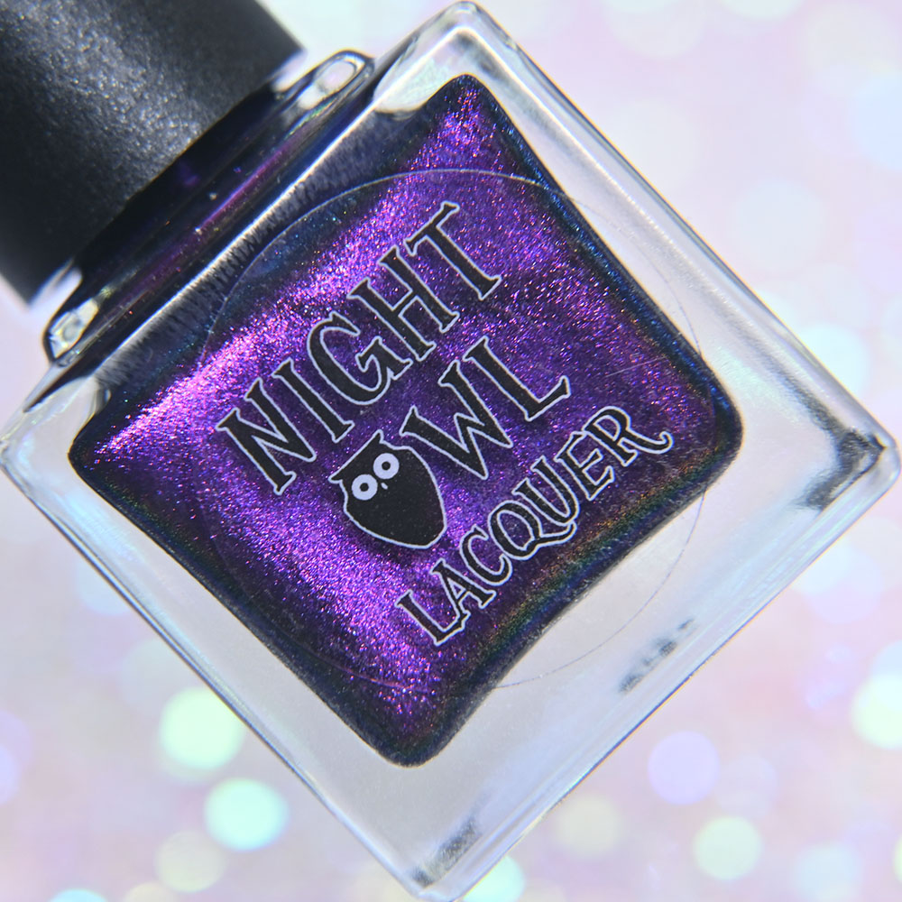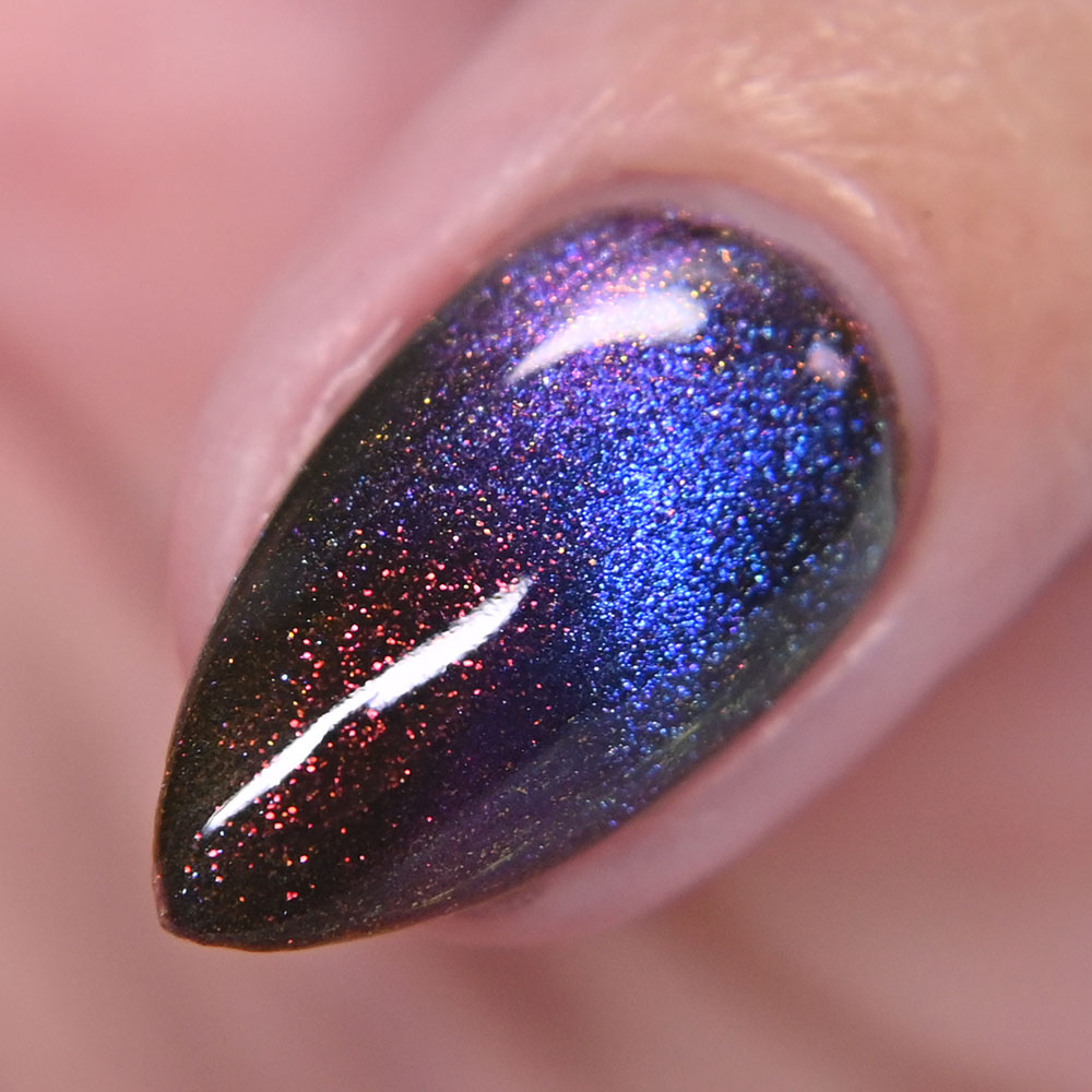 Description: Naturally Moody is a dark blurple based multichrome that shifts violet to magenta to orange to yellow to green.