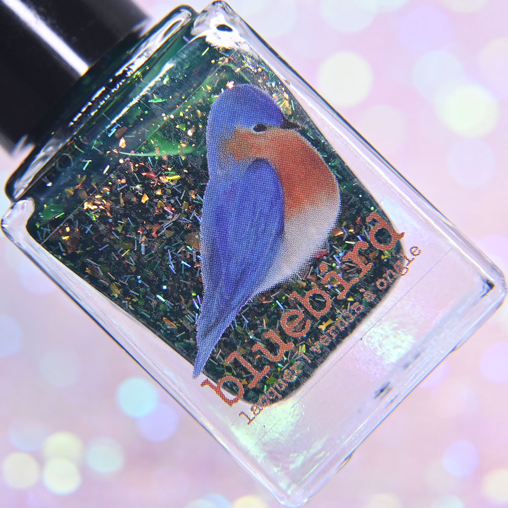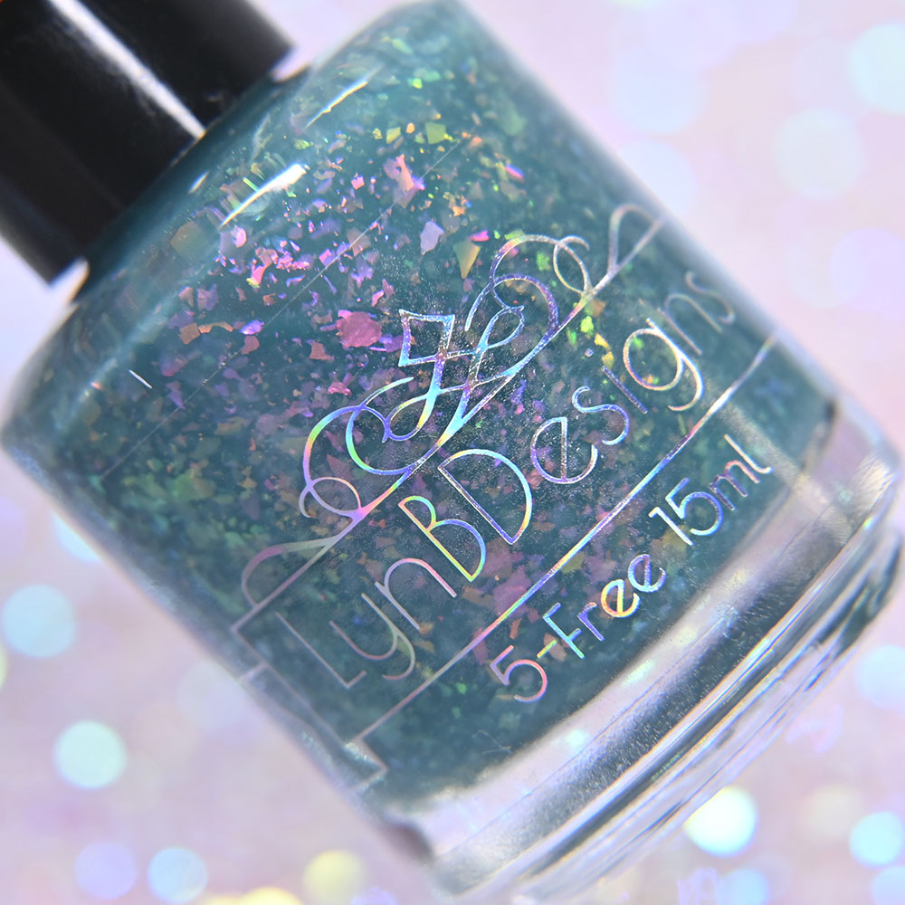 Description: All the Seasonings is a slightly teal leaning green loaded with silver holo micro bar glitters and gold flakes.