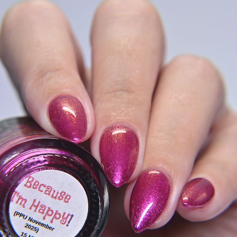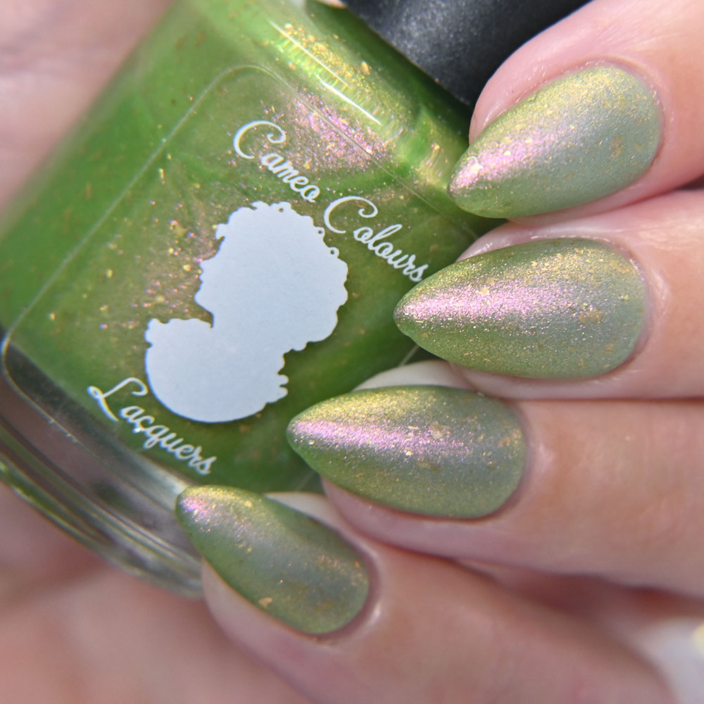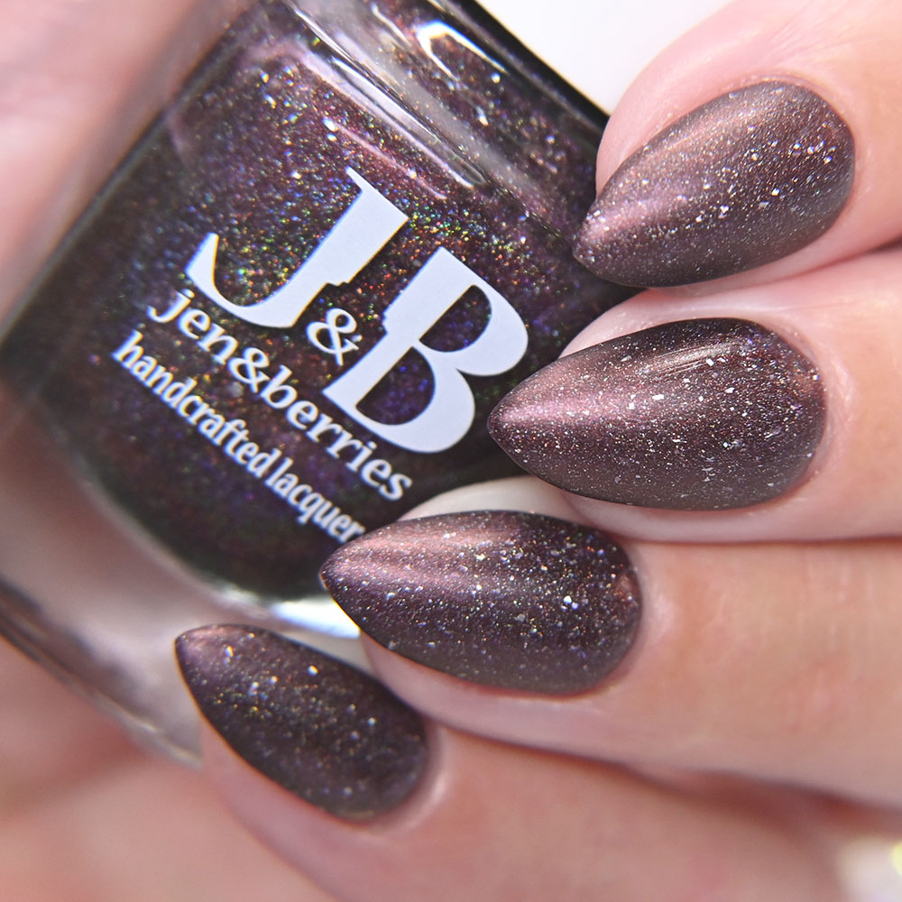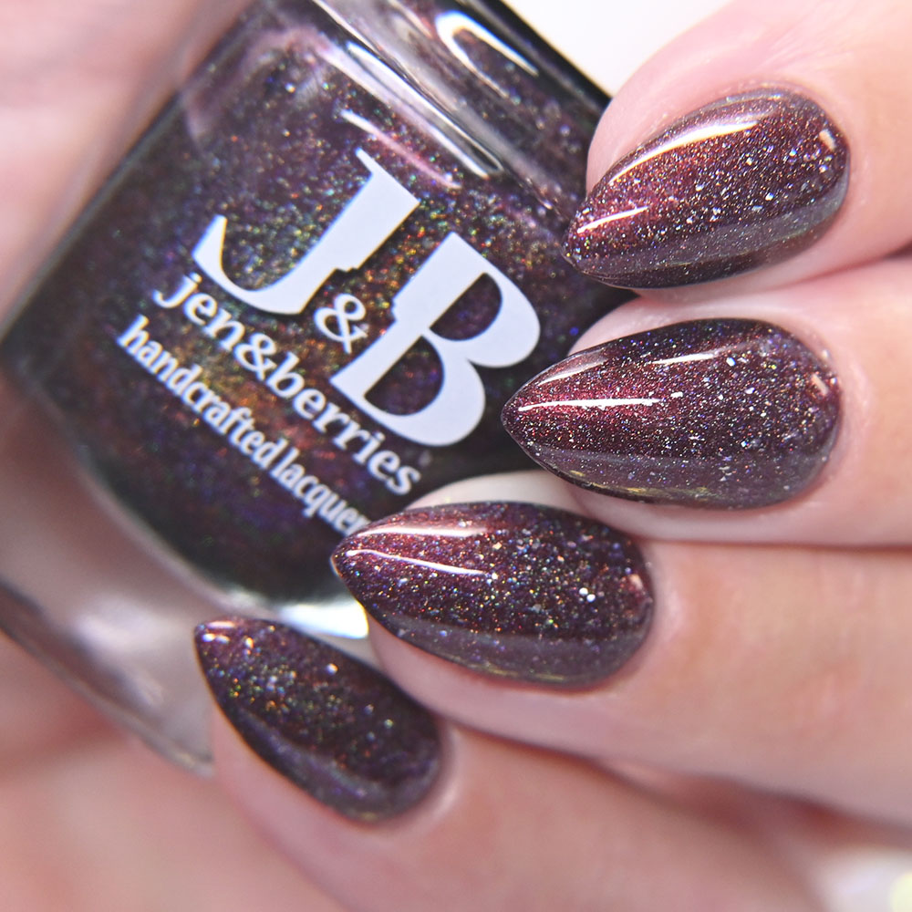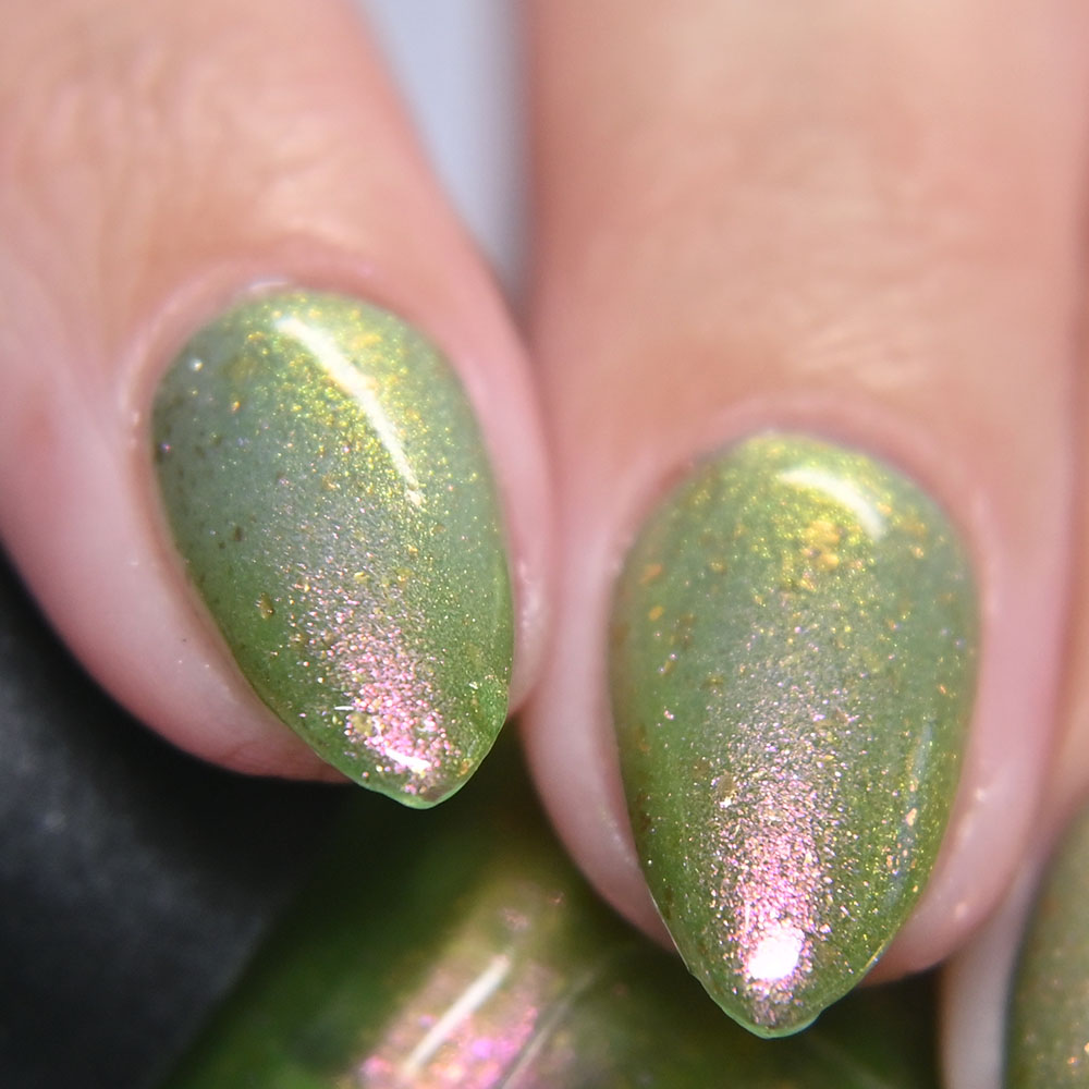 Description: I’m Not Okay is a rich berry tone with green glass flakes that shift like a mood ring.