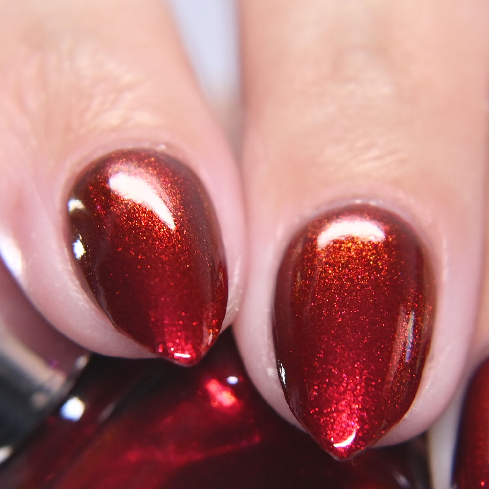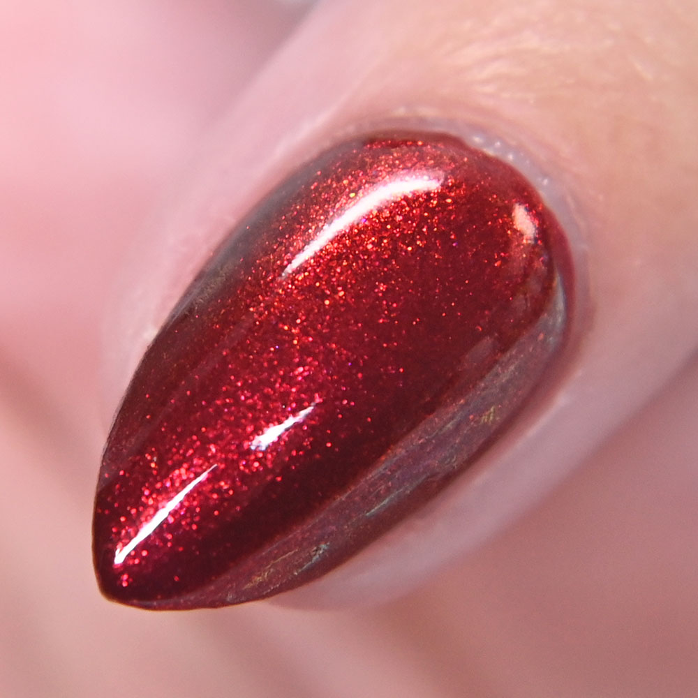 Description: Mad About You is a ruby red base with gold to red magnetic pigment and a subtle scattered holo.
