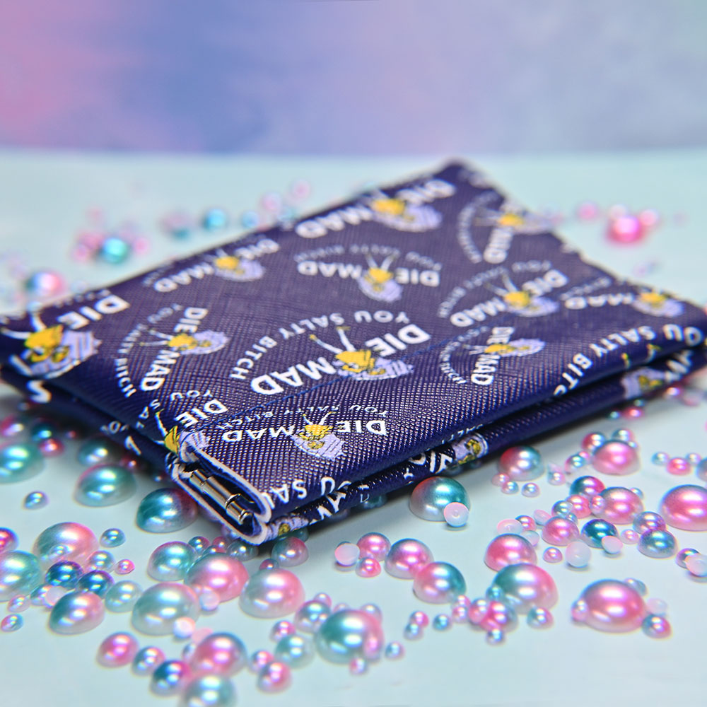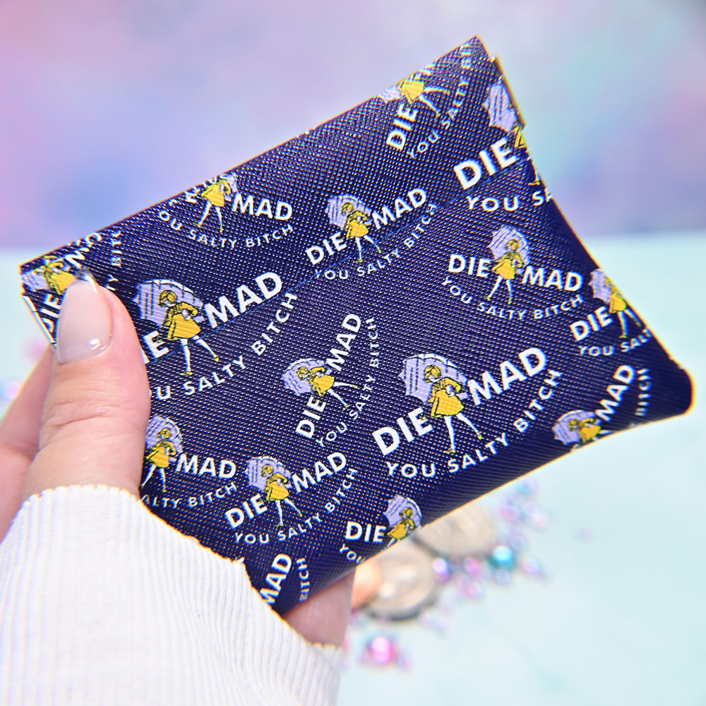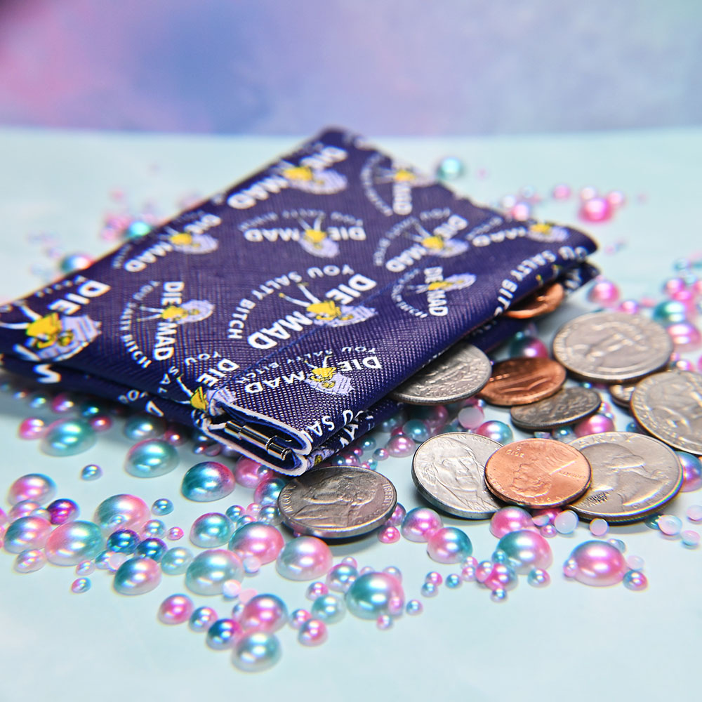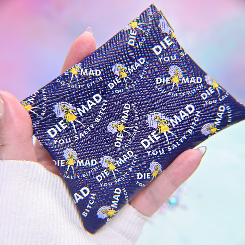 Description: The Not Just a Mood Coin Purse is made in a faux leather Salty print, with a flexible squeeze opening. It is lined with waterproof canvas and should fit easily inside most purses.