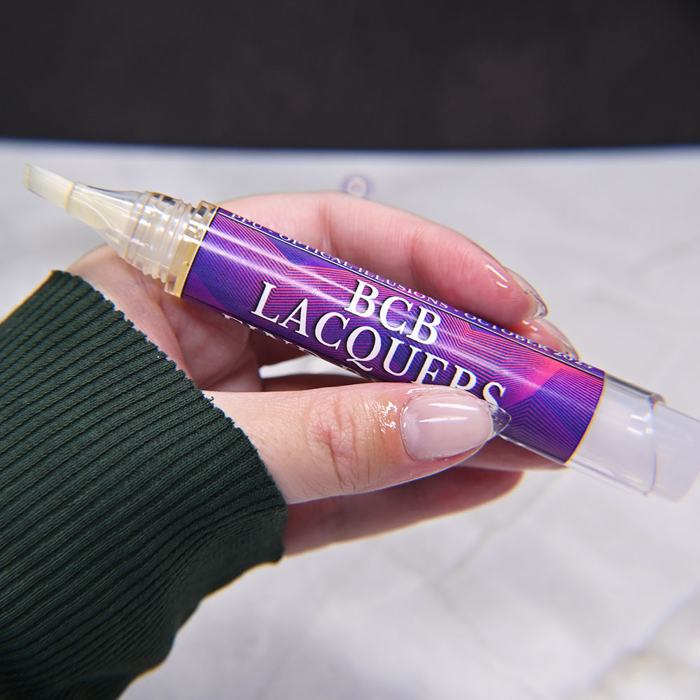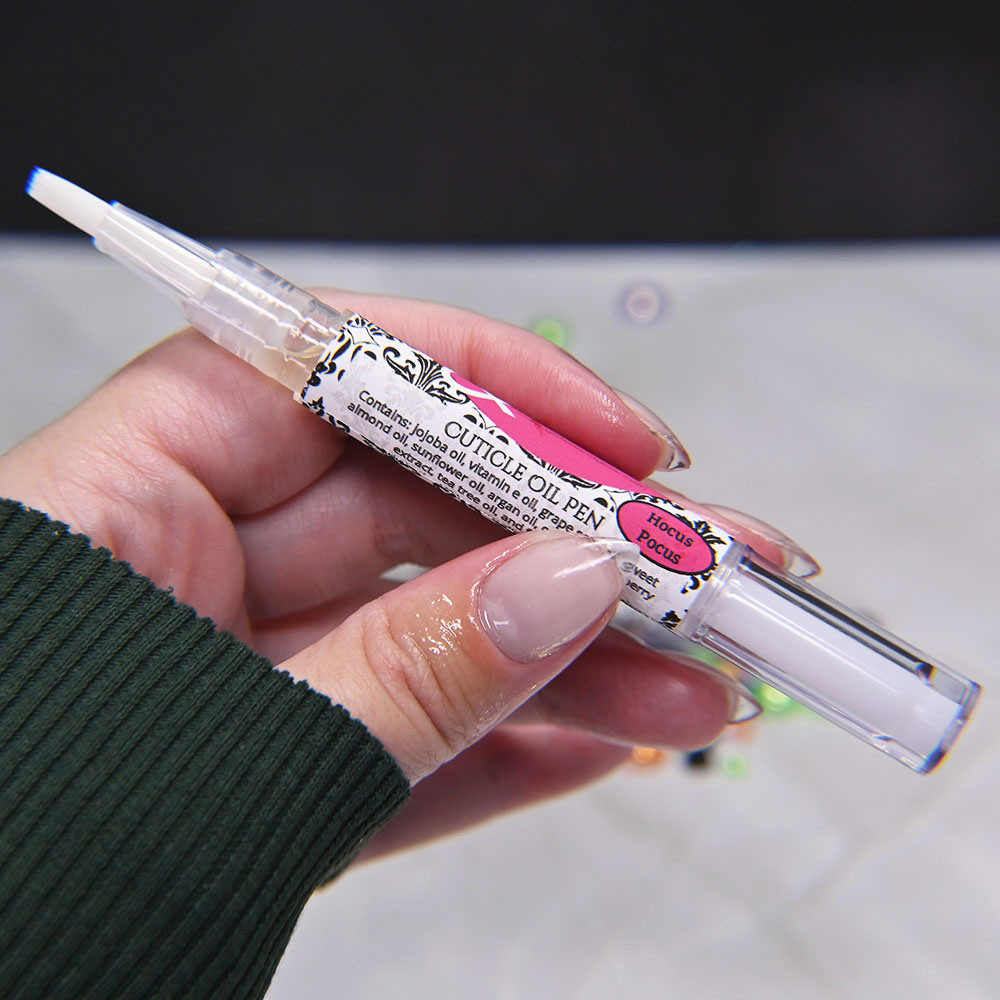 This cuticle oil comes in a 6ml chunky brush pen with a click bottom applicator and a twist off cap