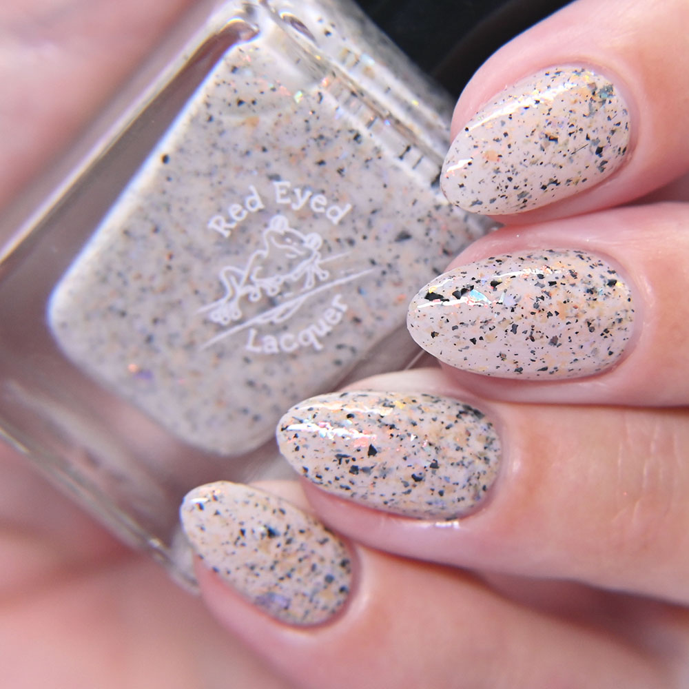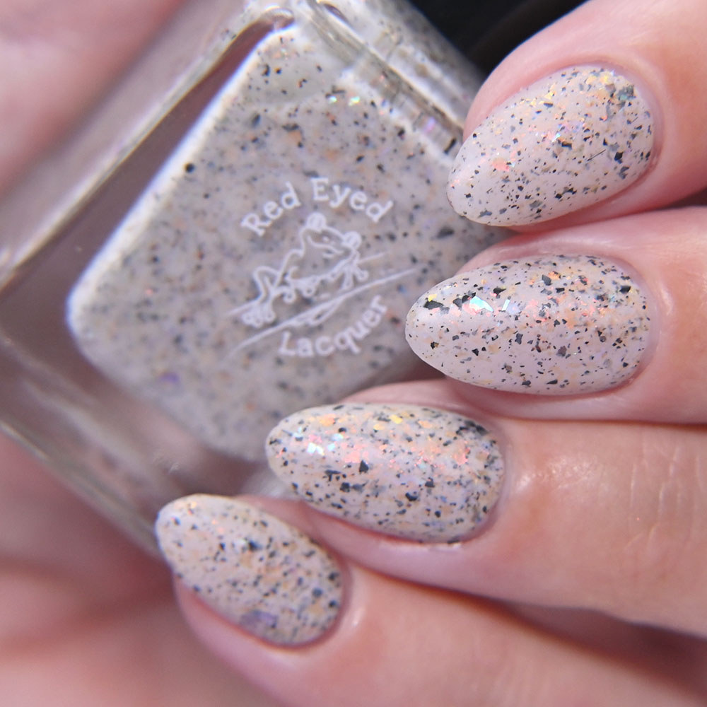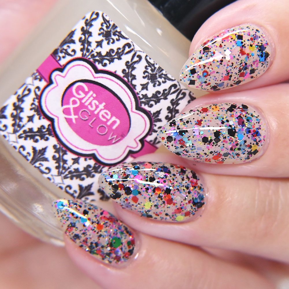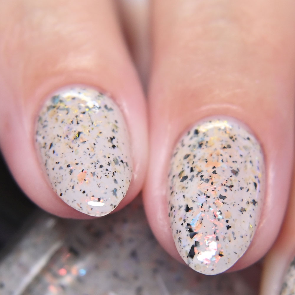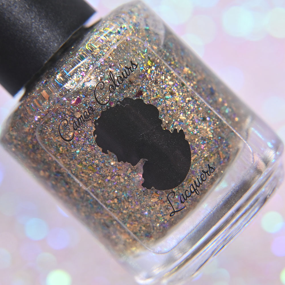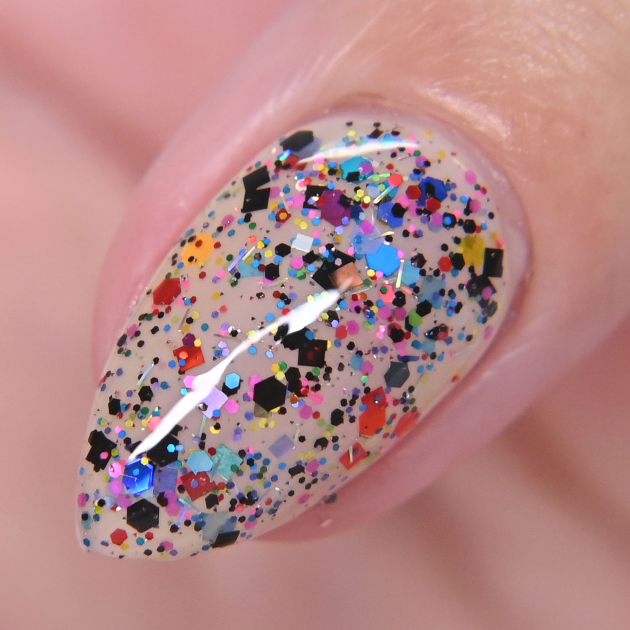 Description: You Saw It Too? Damn It! is a gold flake base with a slight holo sparkle, multicolor metallic flakes, and silver holo micro flakes.