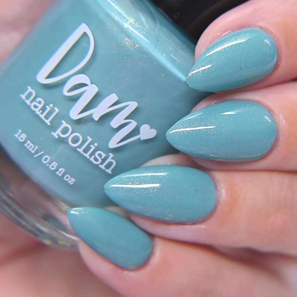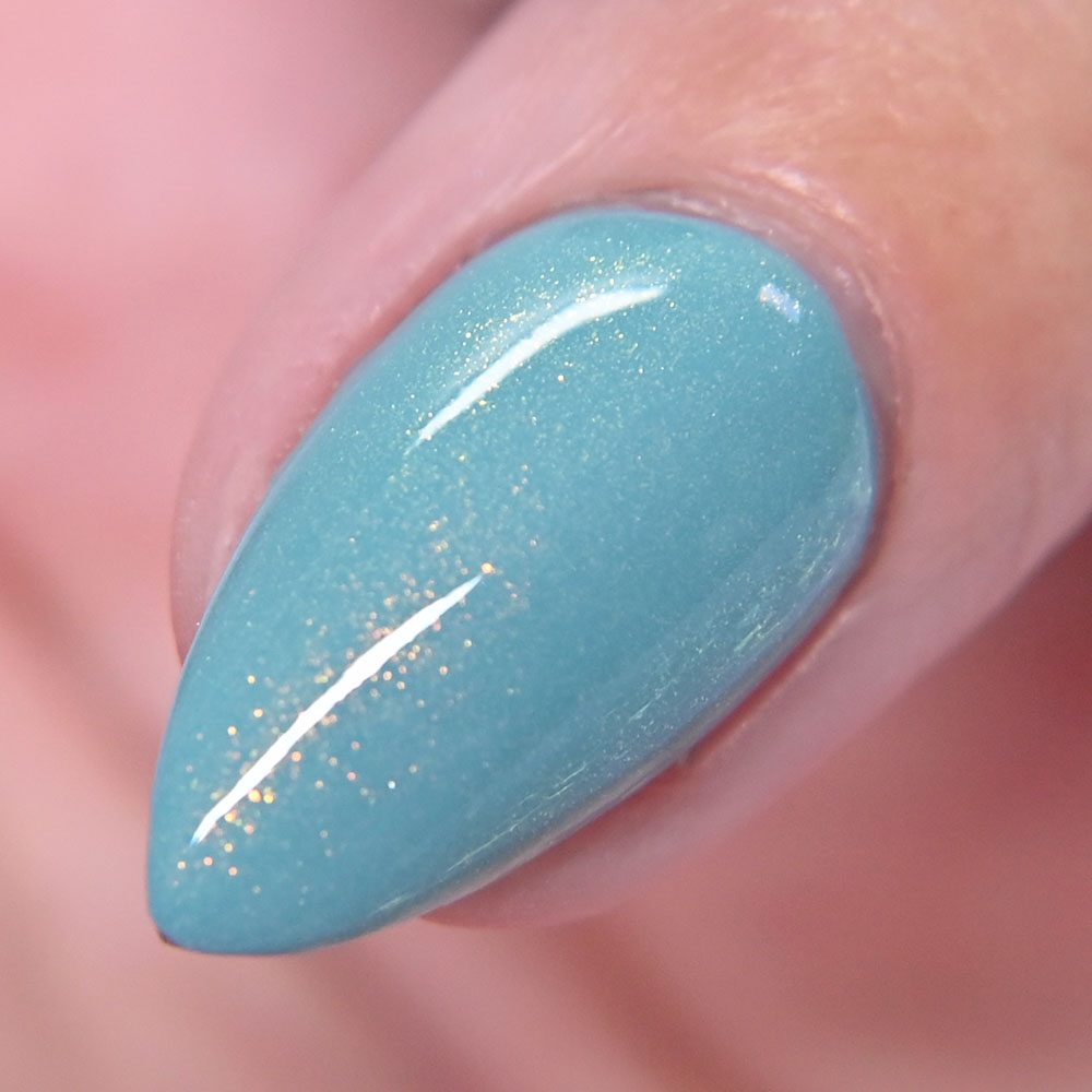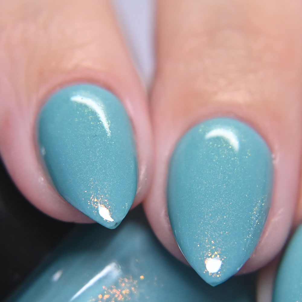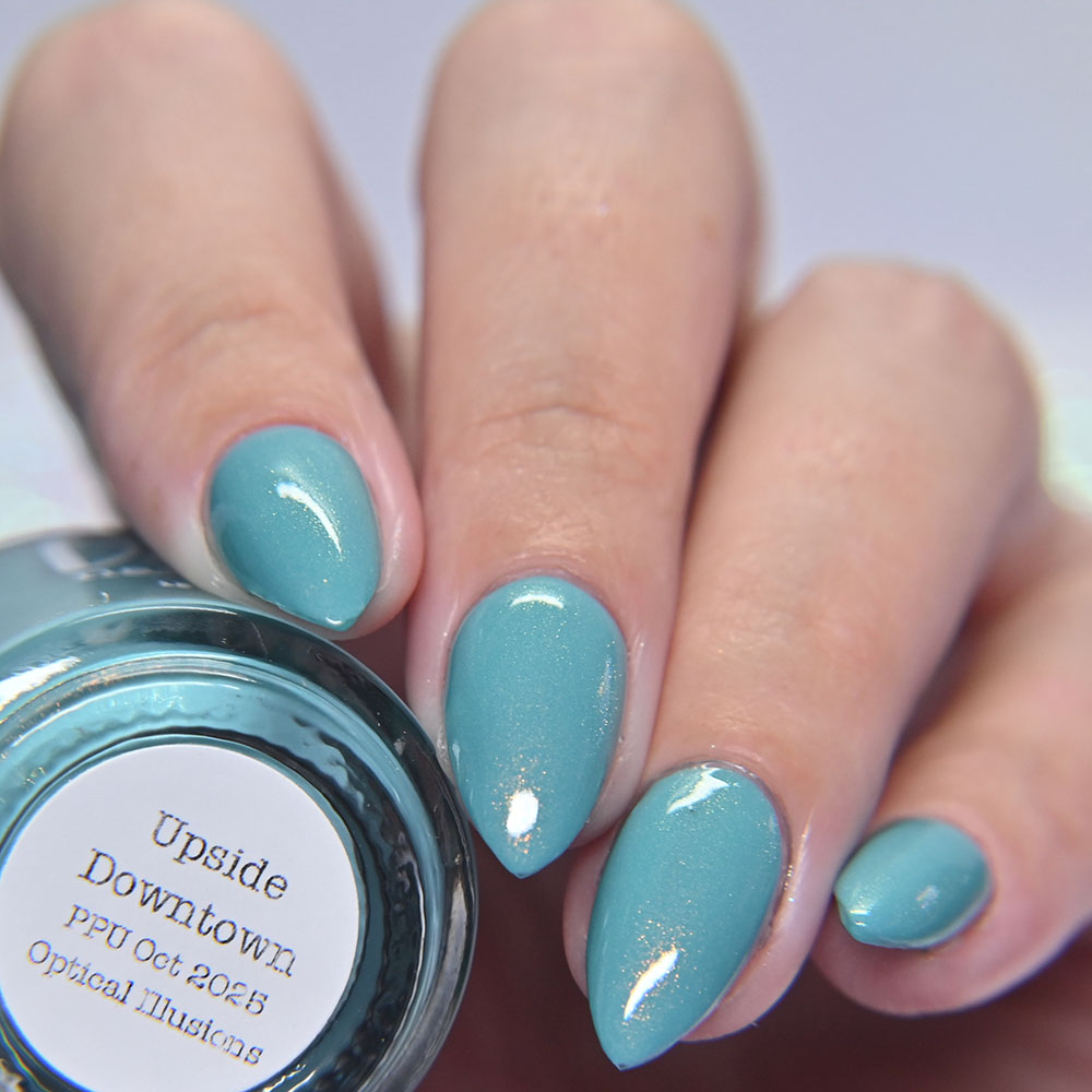 Description: Upside Downtown has a medium teal creme base with gold shimmer.