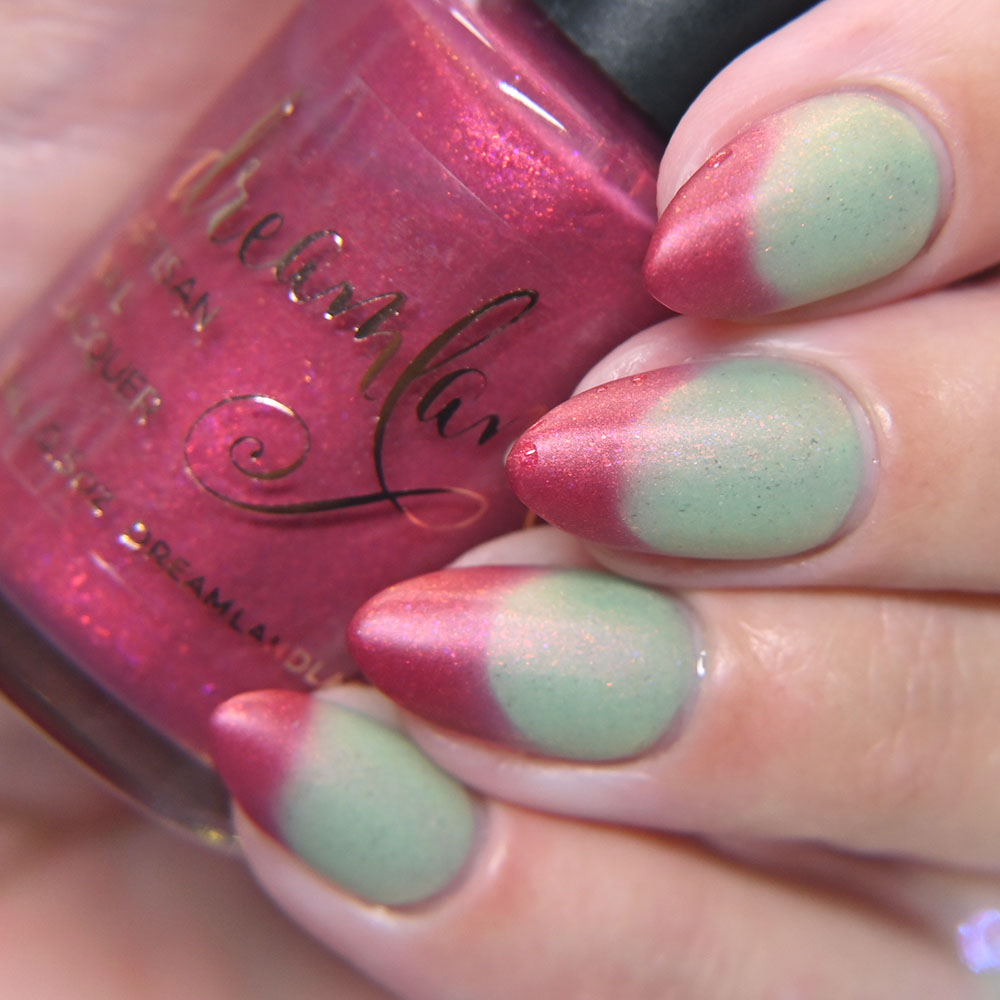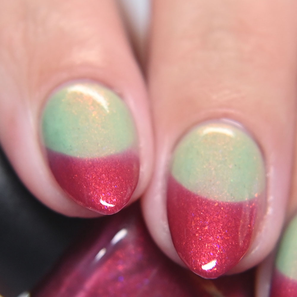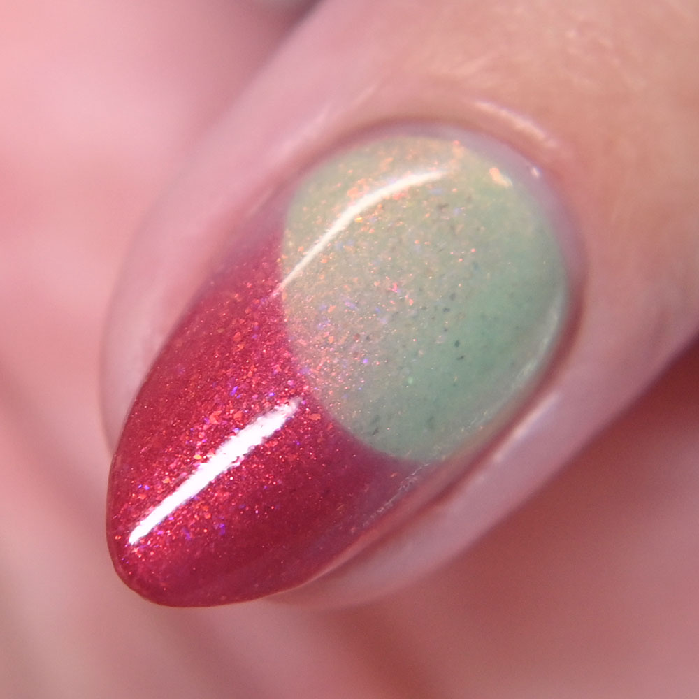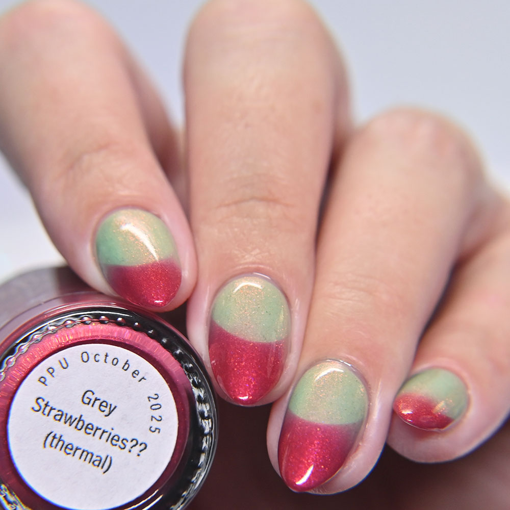Description: Grey Strawberries?? is an aqua (warm) to red (cold) thermal polish filled with shifty red shimmer and microflakes.