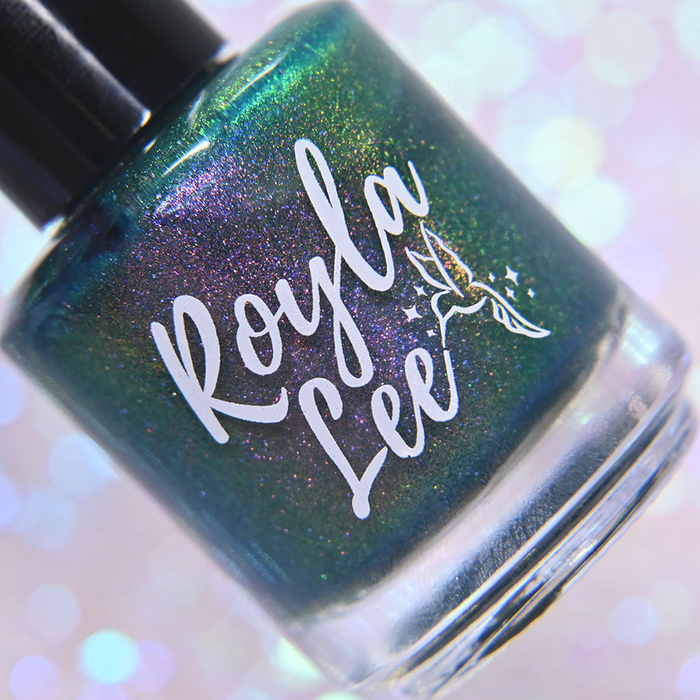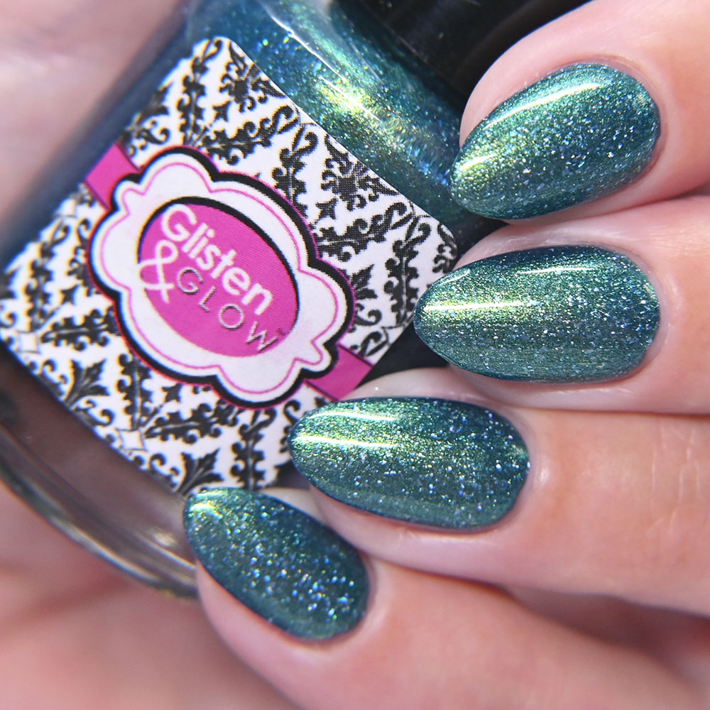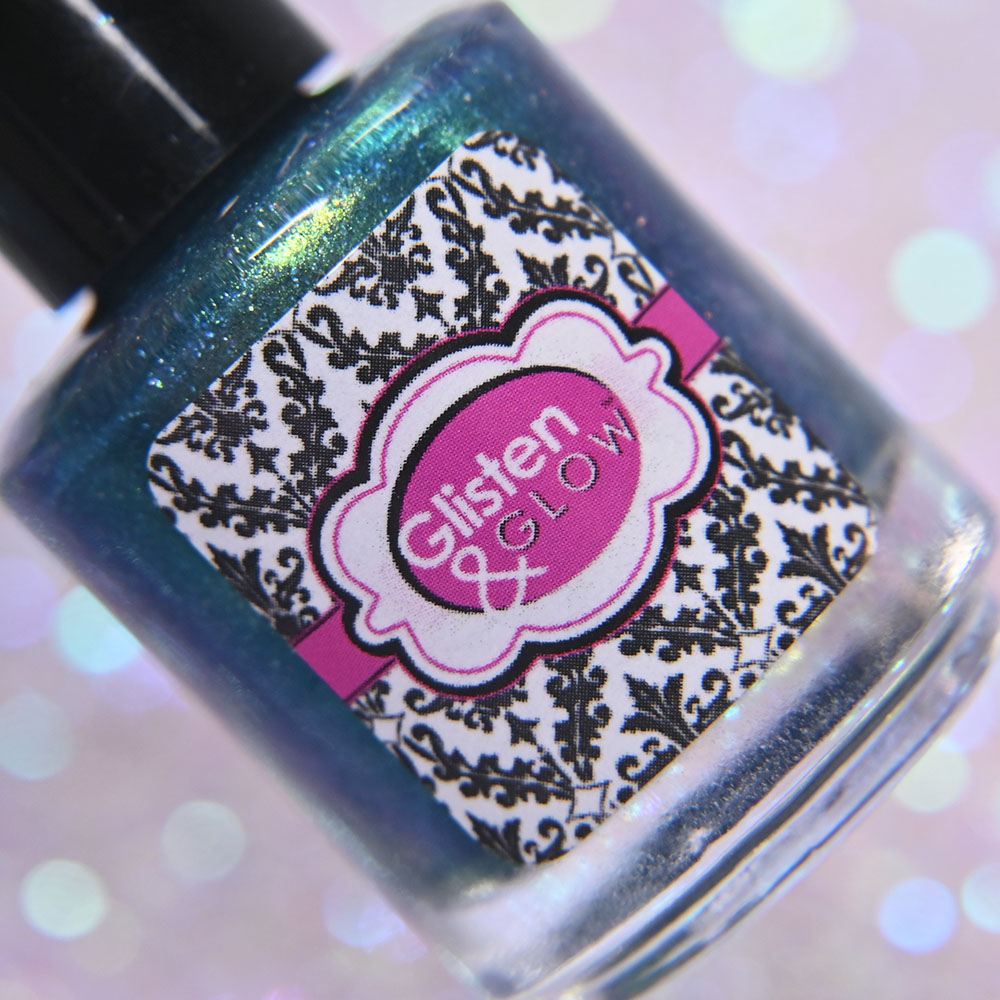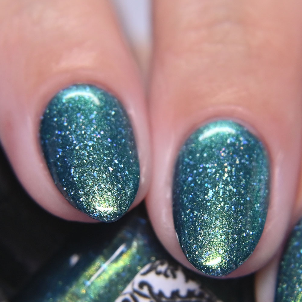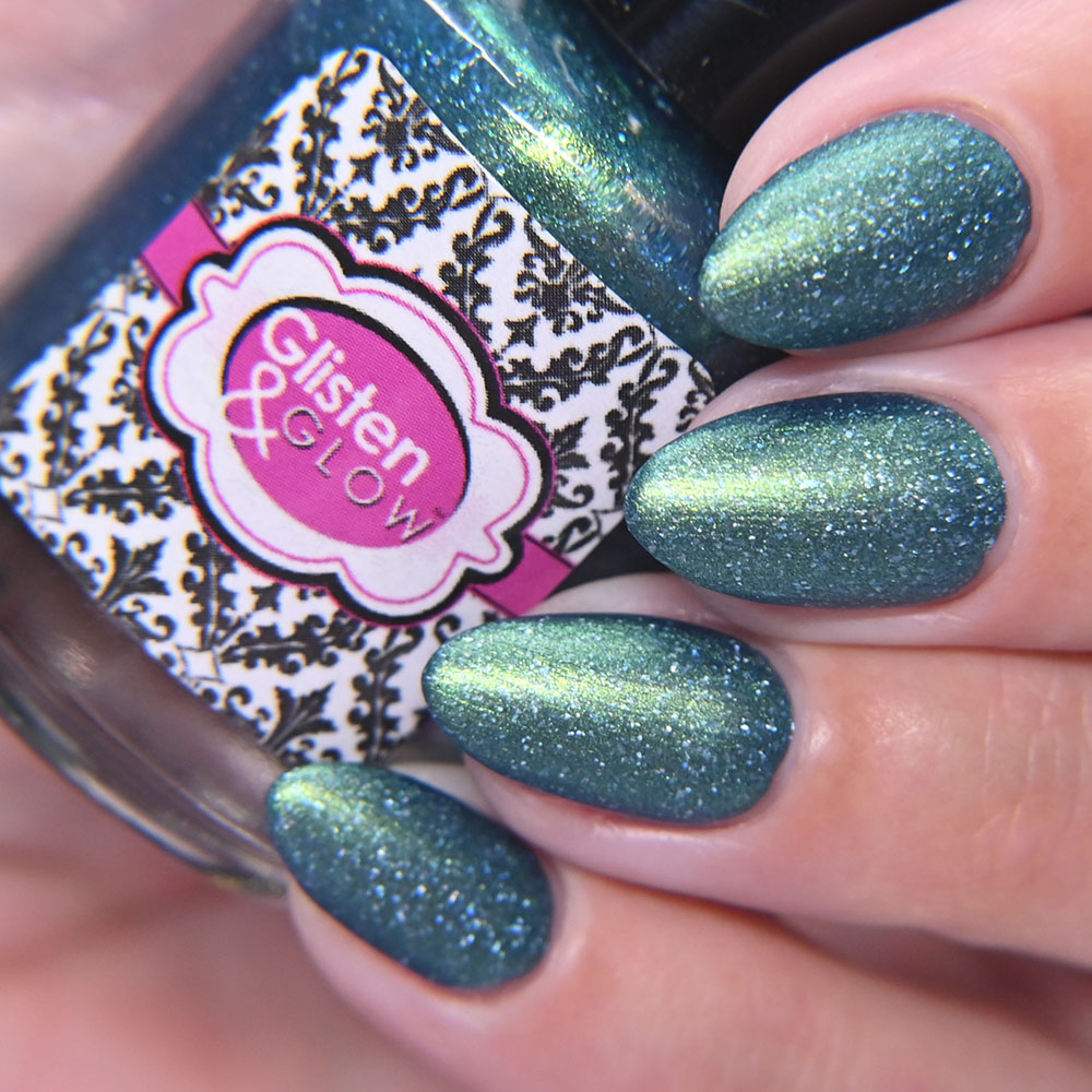 Description: Feathered Illusion is a teal jelly base with a magnetic shimmer that shifts from pink to gold to green, and subtle holo.