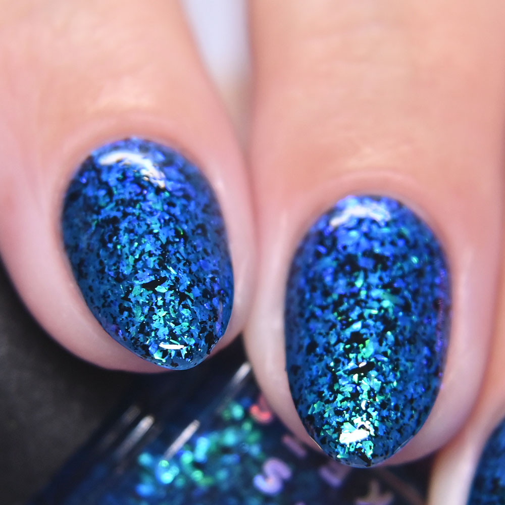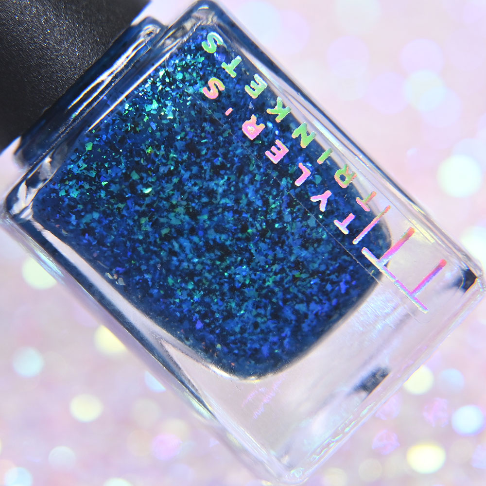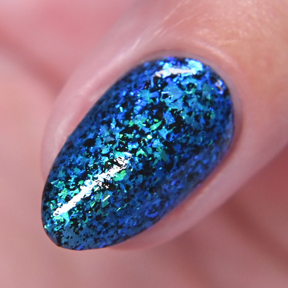 Description: Museum of Illusions is a vibrant blue jelly base loaded with color shifting shimmer that shifts green to blue with holo flakes.