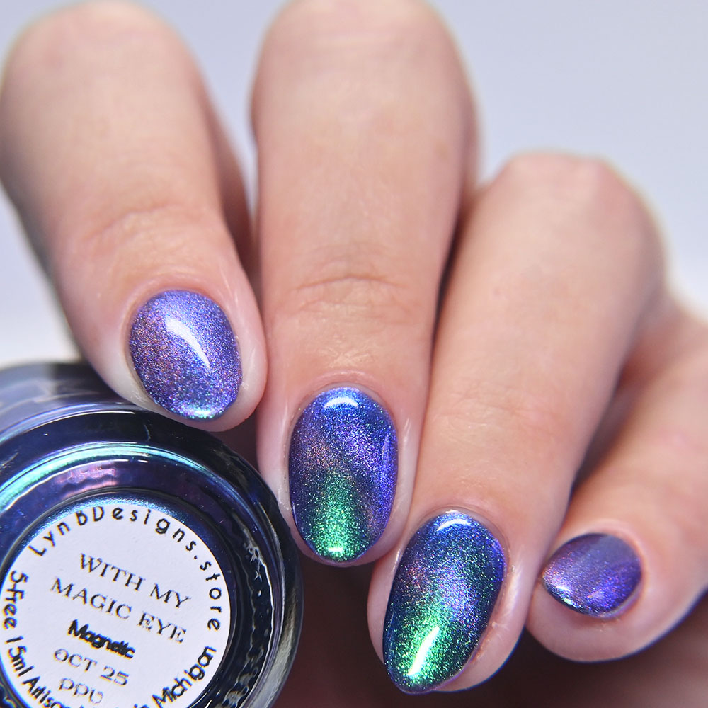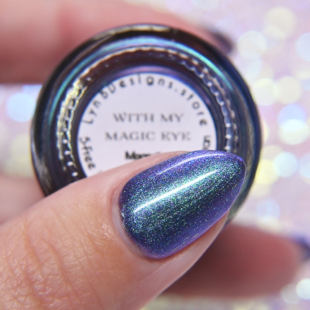 Description: With My Magic Eye is a cool toned purple jelly base with a blue to purple shifting magnetic pull and green to blue shifting shimmer