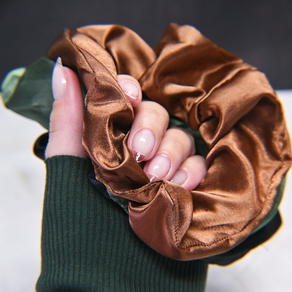 Inspiration: This month ManMade By J&S was inspired by fall. Treat yourself to a little luxury this month with our Fall Satin Scrunchie Trio.
