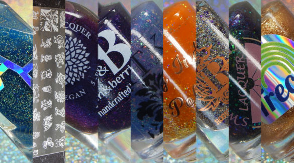 Description: Ripto’s Violet Rage is a lavender jelly base packed with blue and red aurora shimmer, as well as red to blue to purple shifting pigment. I used 3 thin coats and a glossy top coat for these photos.