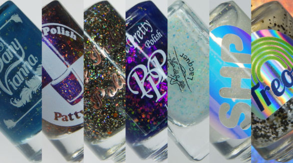 Description: Let’s Get Twisted is a clear based topper with gold to emerald to aqua aurora shimmer, pink to gold to green flakies, with red micro flakes and a mix of micro iridescent glitters. I used 1 coat over Maniology Boys Tears for these photos.