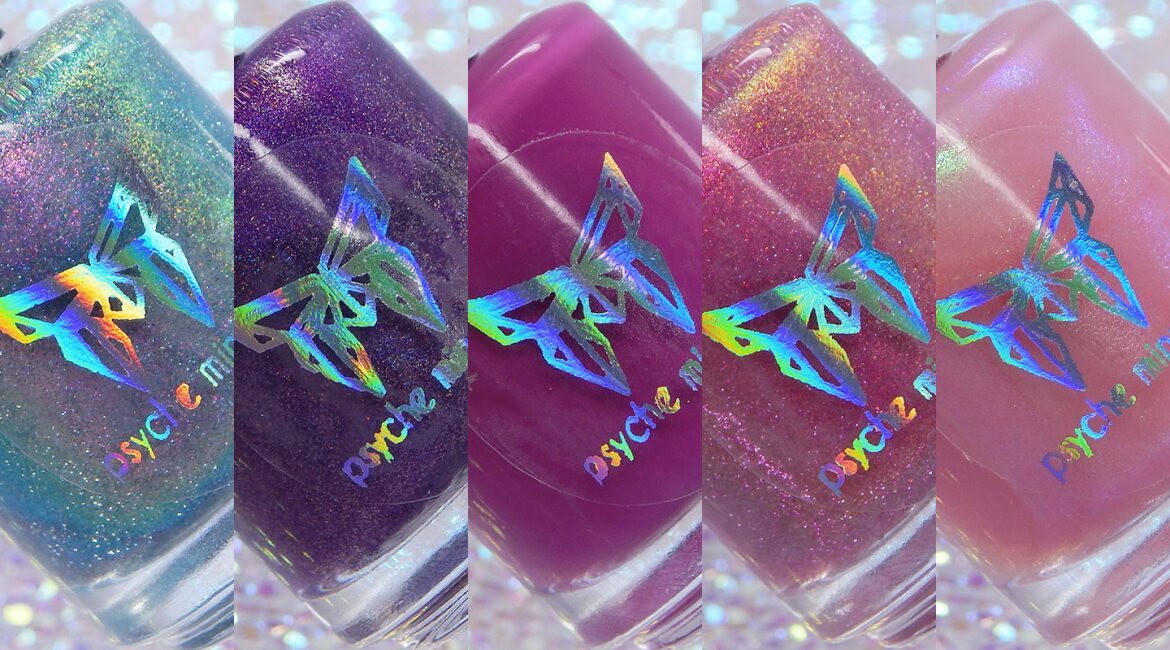 Usually Psyche Minerals does 3-4 piece releases, but this time – it called for 5 polishes. This release has a nice assortment of finishes and the shades are all ones I tend to gravitate towards – so that makes me ridiculously happy! This collection was inspired by stormy April days which eventually lead to a spring filled with beautiful flowers in May