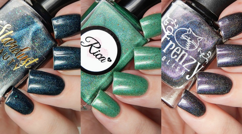 What is G.N.O.M.E.? It stands for Glitter Nerds Of Magical Existence! Rica and Stardust Polish are two brands that are constant in this three polish box, and each month there is a guest maker. September 2016’s guest maker is Frenzy Polish!