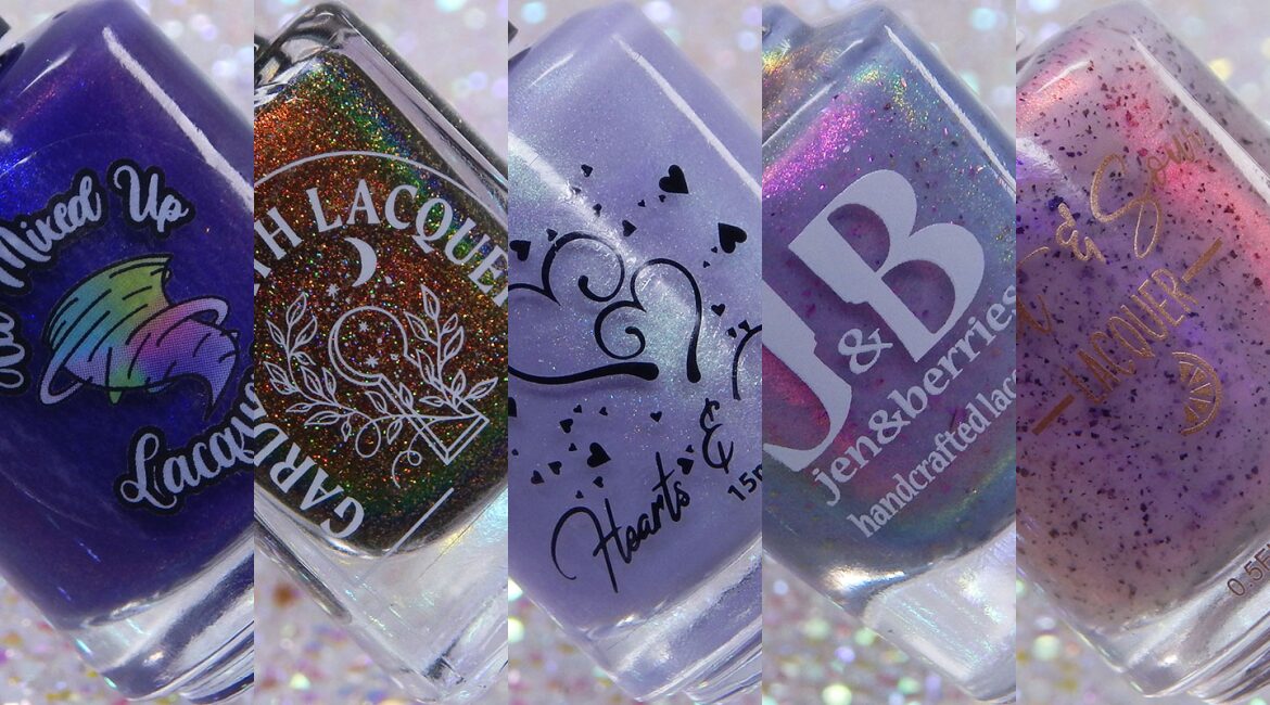 Description: Even Miracles Take A Little Time is a lavender crelly base with a pink to gold shimmer and fuchsia metallic flakes.
