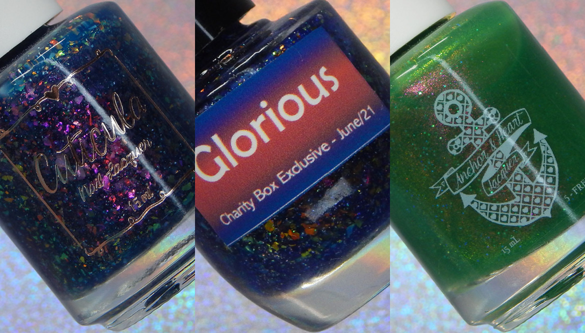 Happy Thursday! I’ve been trying to get my posts up all week but work was busy and I’m getting more training with face to face with patients – so when I got home I was wiped and actually took naps a couple days this week… and I rarely nap. So… a little last minute, but I have 3 polishes from The Charity Box for June 2021, and the theme is Out Of This World!