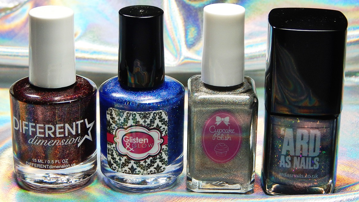 This is an all holographic box and each month it will have 3 constant indie makers in it – Glisten & Glow, DIFFERENT dimension and Cupcake Polish. The guest maker this month is ‘Ard As Nails!