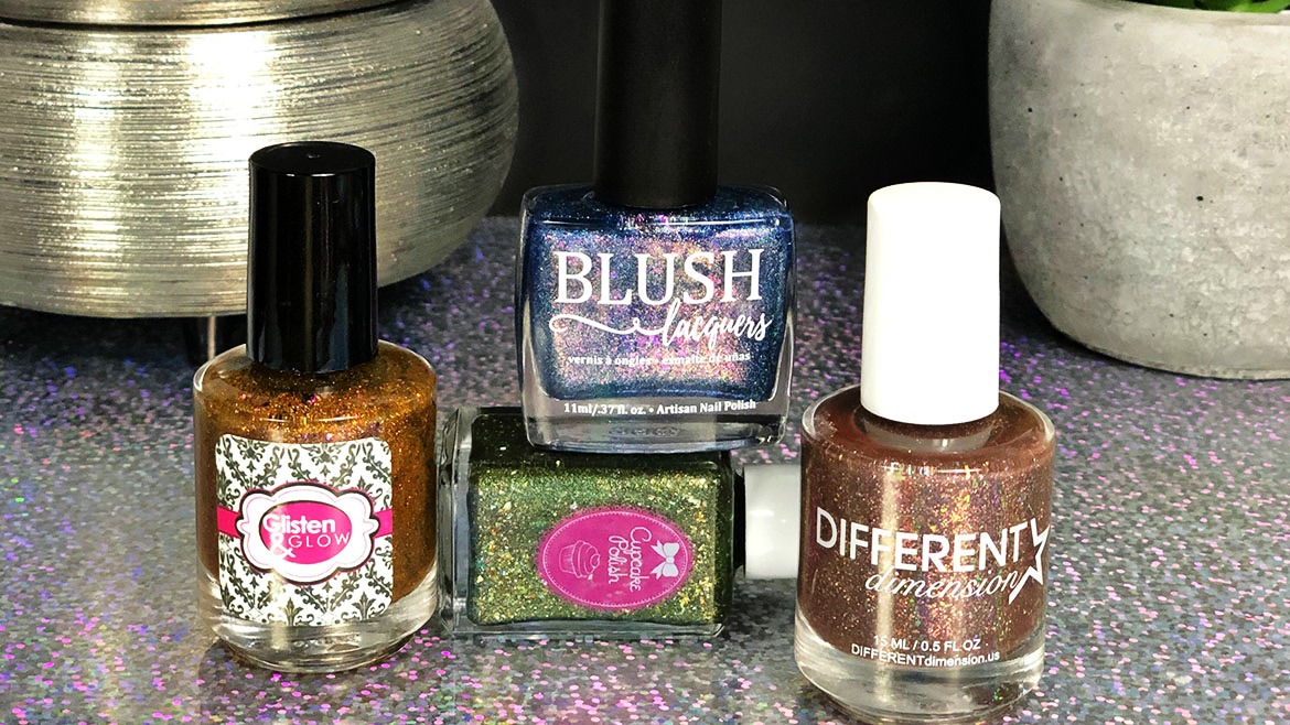 This is an all holographic box and each month it will have 3 constant indie makers in it – Glisten & Glow, DIFFERENT dimension and Cupcake Polish. The guest maker this month is BLUSH Lacquer!