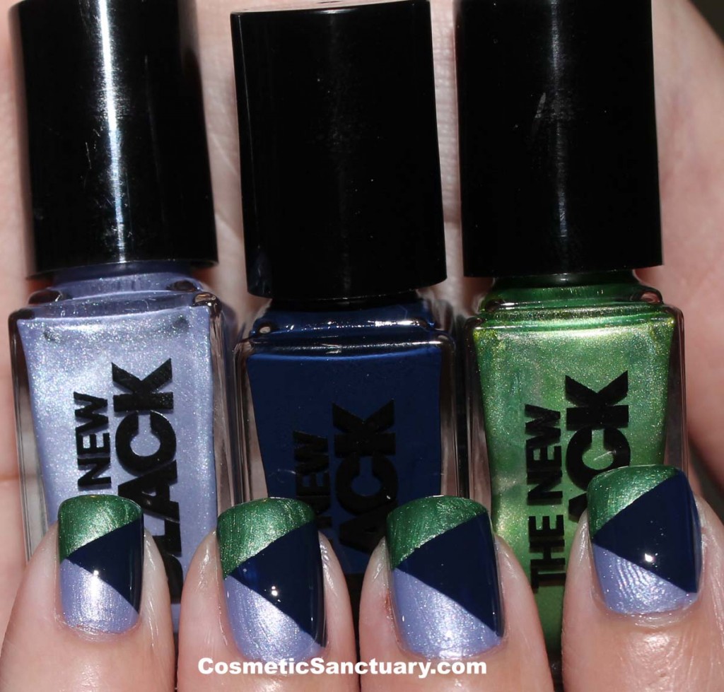 My second mani was my first color blocking experience! I used the remaining 3 colors for this mani! A nice shimmery lavender as the base, then the deep blue for the center and a shimmery green on the tips. I am not 100% happy with the color block, but I thought it wasn’t bad for a first try! Much like the first mani, each color only needed one coat and it was perfect!
