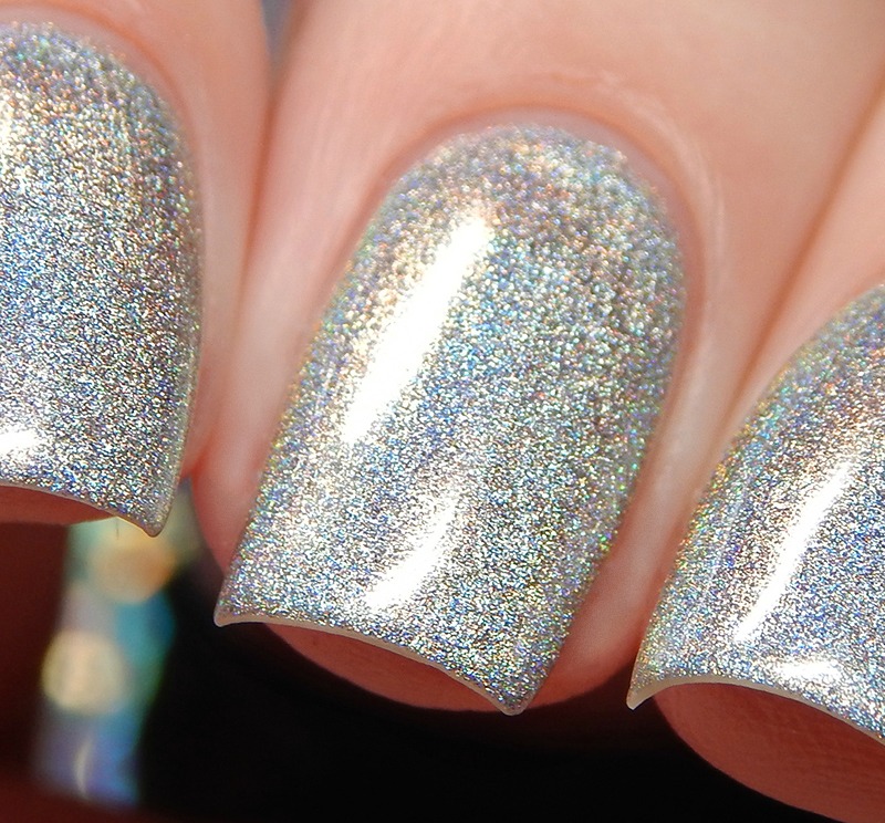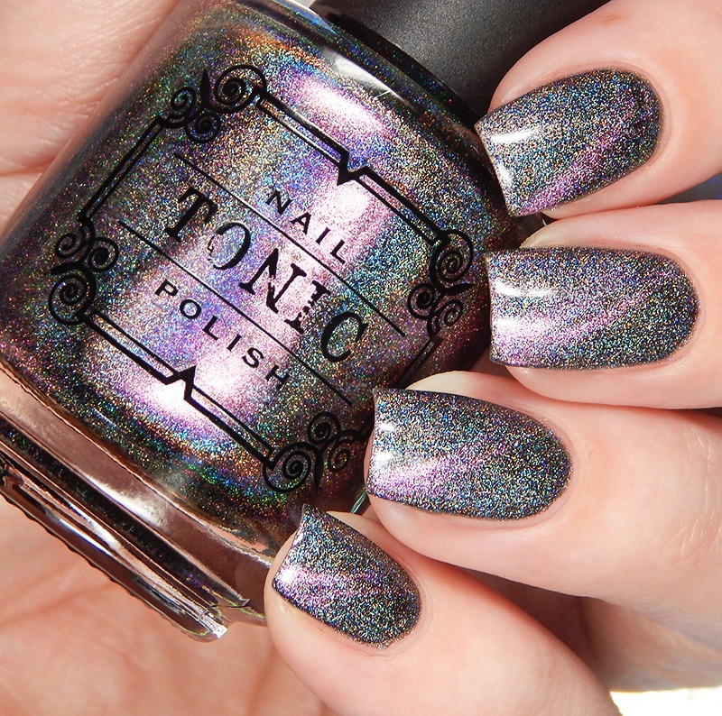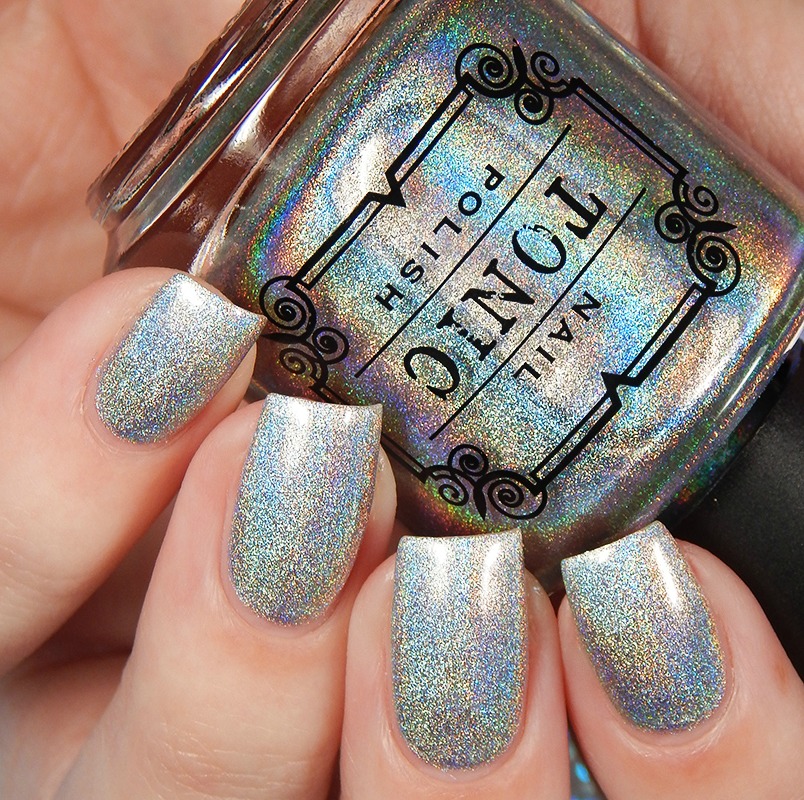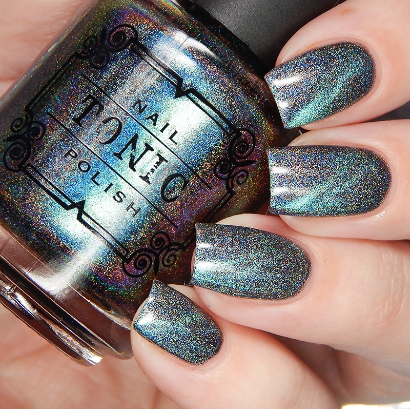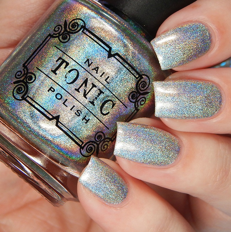 Last up – we have Jinkx! Jinkx is also in the Tonic Basics. This is a pure silver linear holographic. It’s super holo too. My photos don’t entirely do it justice since my set up is more for color accuracy than special effects, but you can still see the rainbow here. It is blinding in the sun.