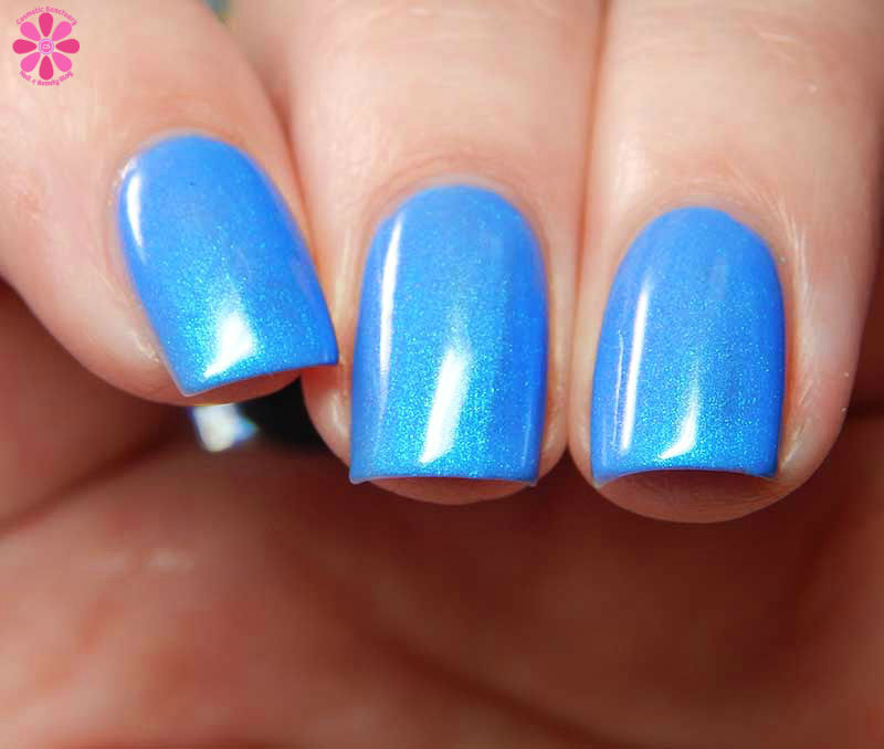 I Am GIN-vincible is my top pick from this collection. It freaking GLOWS on your nails! This is a medium blue creme base with vibrant turquoise to purple shifting shimmer. The purple shift is really subtle, so mainly you see the blue base with the vibrant turquoise popping out. I used 2 coats and a glossy top coat for these photos.