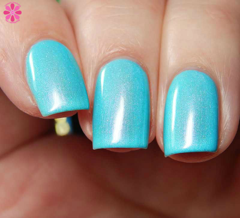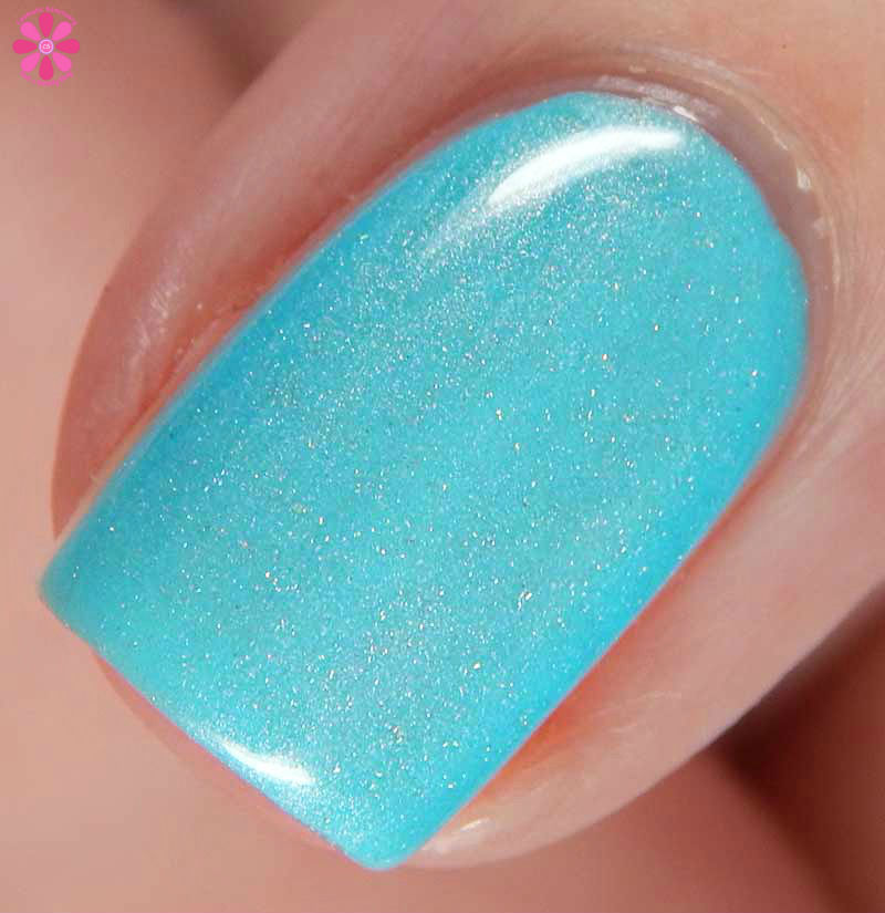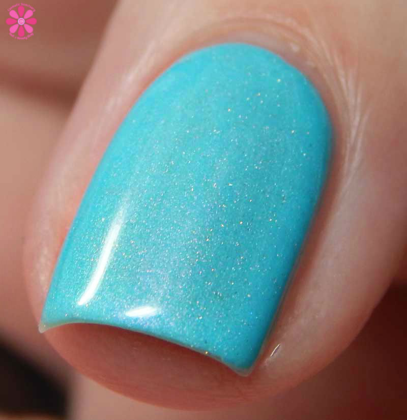 Tequila Made Me Do It is a stunning medium aqua creme with turquoise shimmer that shifts strongly to pink, as well as a splash of scattered holo. I used 2 coats and a glossy top coat for these photos.