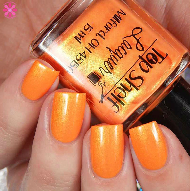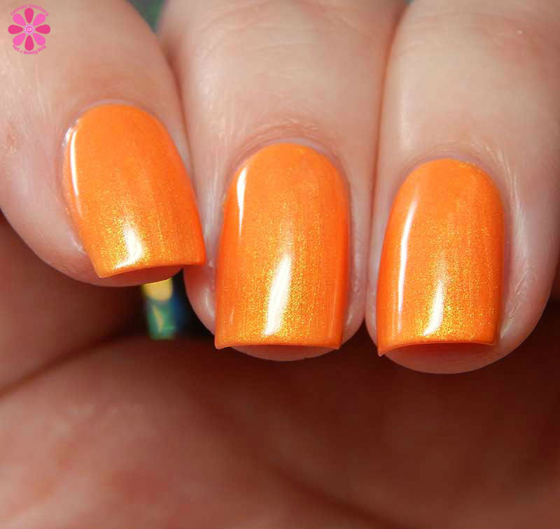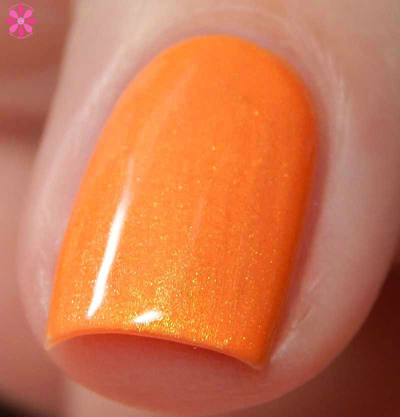 I find this name to be really punny, but part of me also feels like it should have been a pink shade too? Anyways, You Can’t Sip With Us! is a bright tangerine orange creme base with golden green shimmer that flashes pink in the right lighting. I used 2 coats and a glossy top coat for these photos.