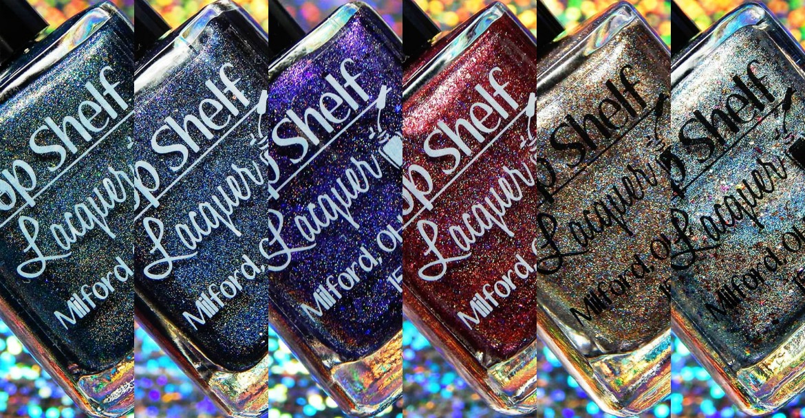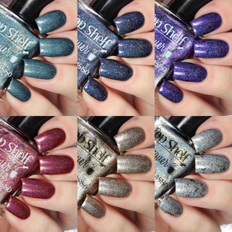 The Top Shelf Lacquer Get In The Spirit! Collection is a 6 piece collection with shimmery, holo-y and flaketastic creations.