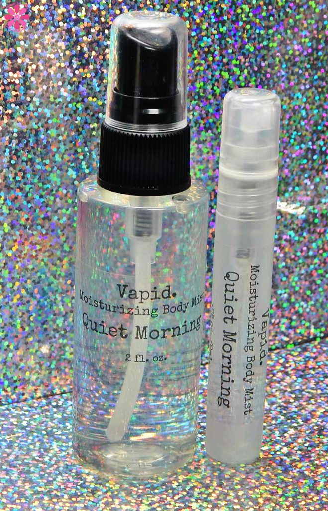 Quiet Morning is black tea, bergamot and hints of marshmallow. On first whiff, it kind of smells like baby powder, and when it dries down you get the tea and marshmallow scents. It’s interesting and definitely a light scent. To me it’s the lightest one Vapid has made so far.