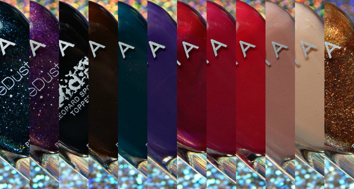 This is a 12 piece collection that ranges from neutrals to brighter, festive colors and some Pixie Dusts! There’s also an effects top coat.